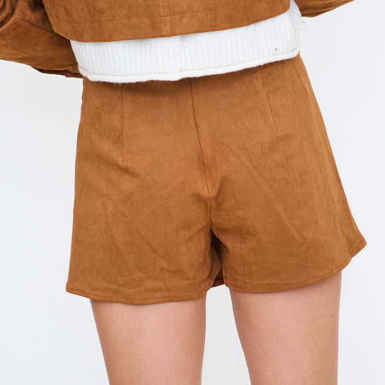 Elevate your everyday look with the Suede Wrap Skort. Designed with the chic appearance of a skirt and the comfort of built in shorts, this piece blends style and ease effortlessly. Crafted from soft, suede-like fabric, it features a flattering wrap-front silhouette that adds texture and dimension to any outfit. Perfect for dressing up with boots or keeping it casual with flats, this versatile skort transitions seamlessly from day to night.