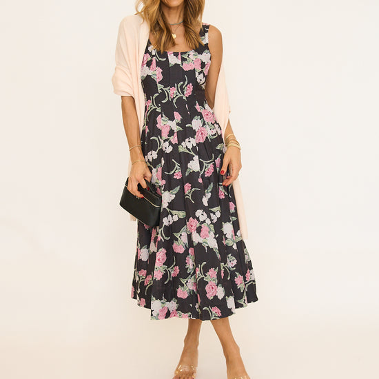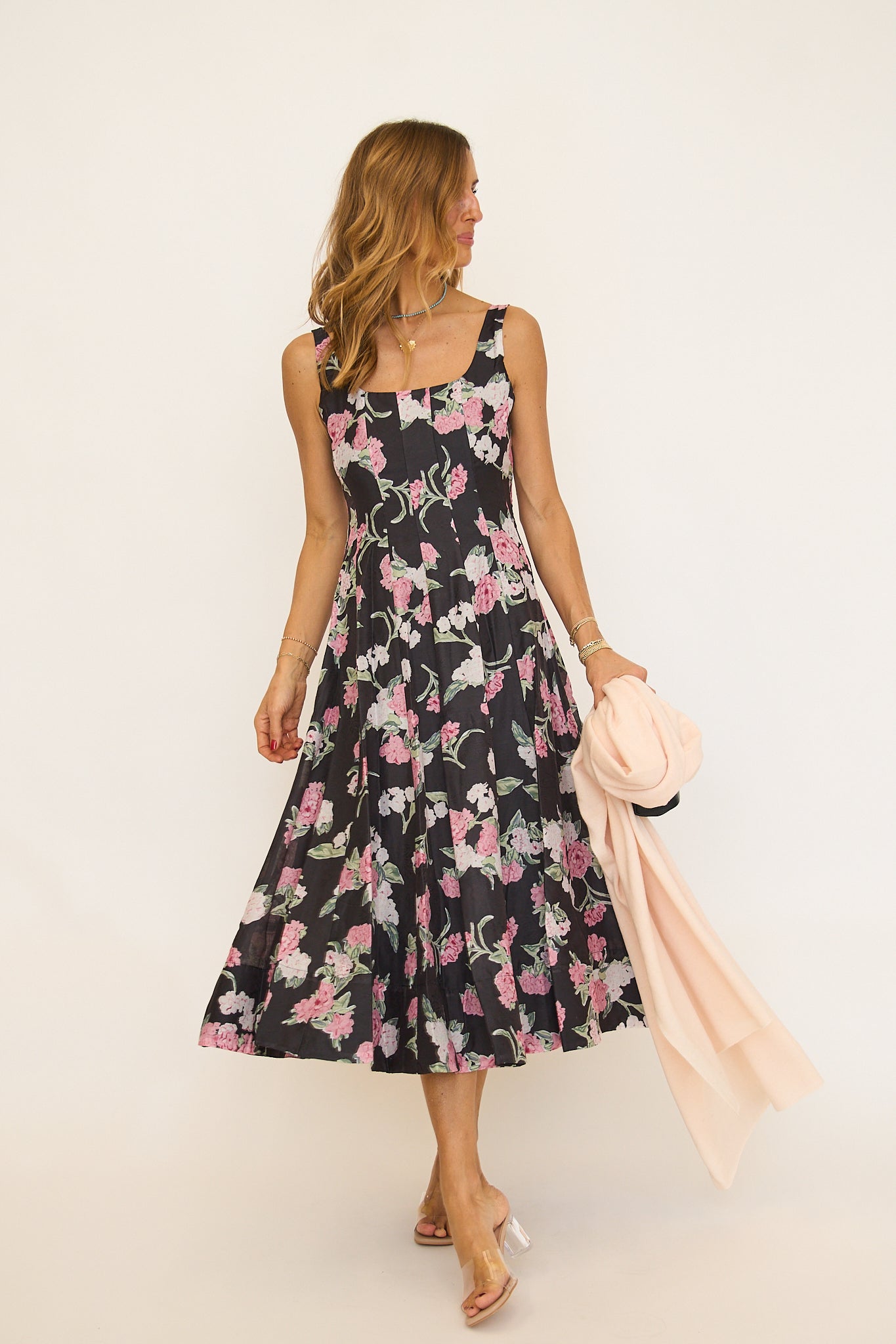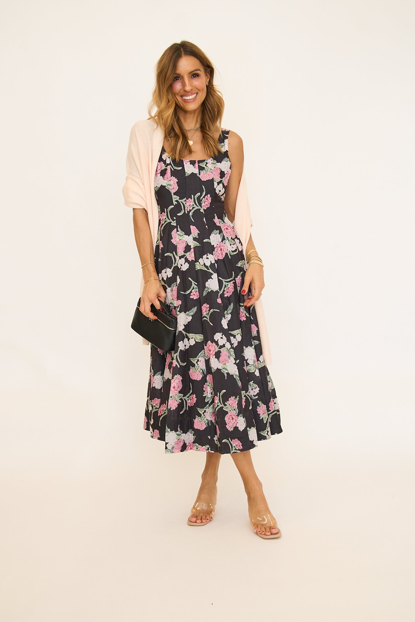 Runs slightly generous, size down if in between. Rachel is 5'8" wearing the XS.