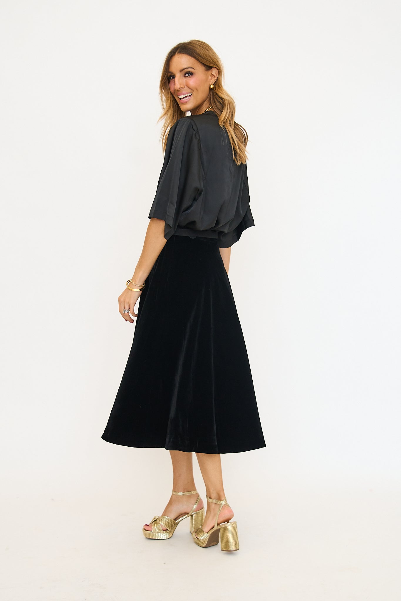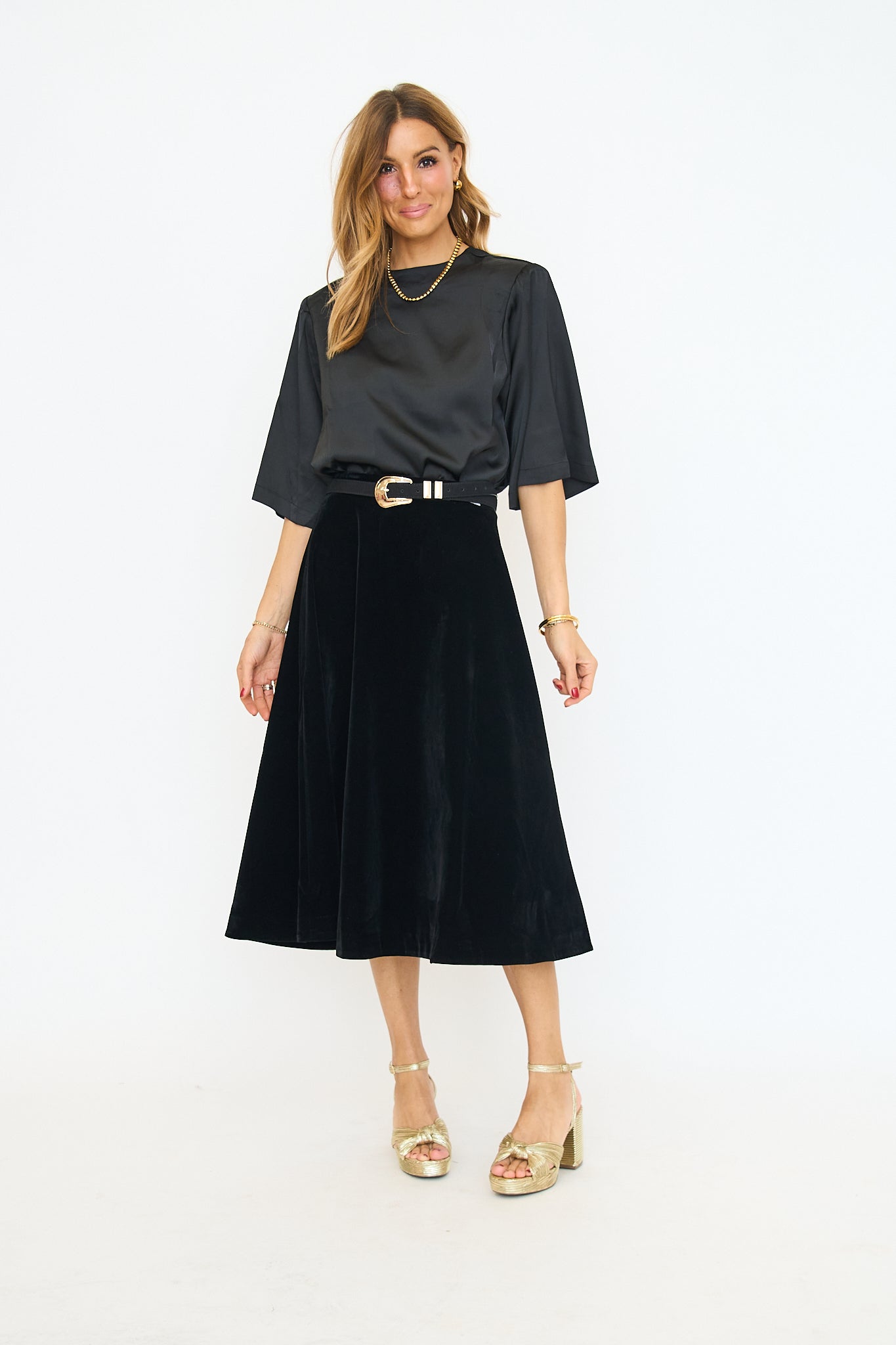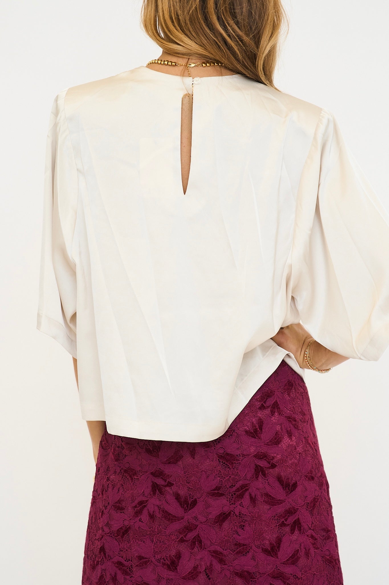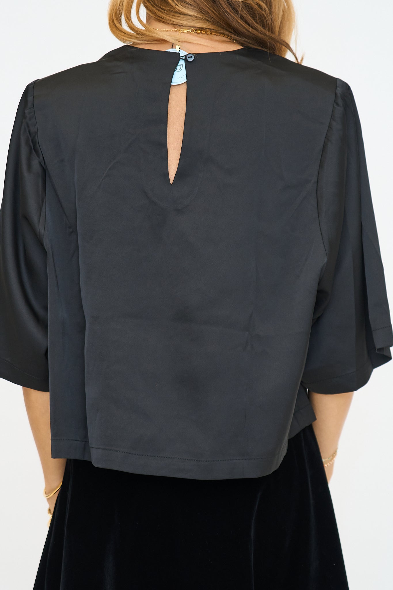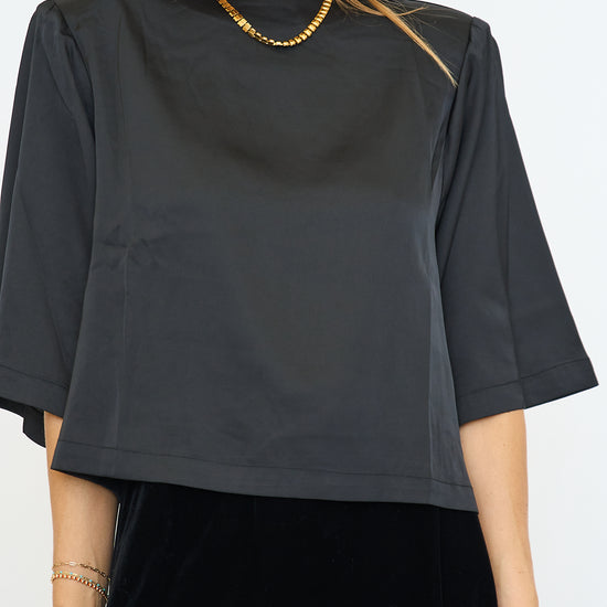 A sleek and modern essential designed to make any outfit feel effortlessly refined. Crafted from smooth, luxe satin, this top drapes beautifully across the body, offering a sophisticated sheen that transitions seamlessly from day to night.