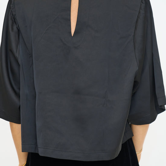 Structured shoulder pads add a bold, contemporary edge—creating a clean, confident silhouette that flatters and elongates. The minimalist cut keeps the focus on its elegant fabric and strong lines, making it an ideal piece for styling with tailored trousers, high-waist denim, or layered under a statement blazer.