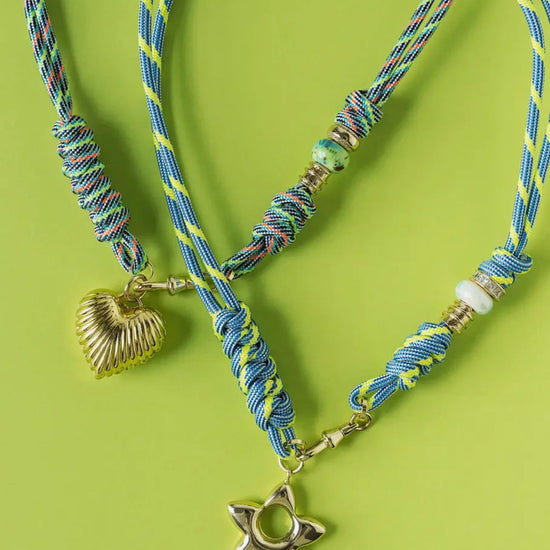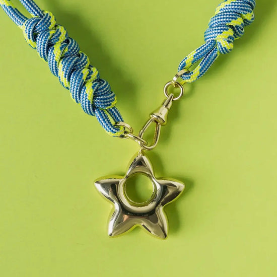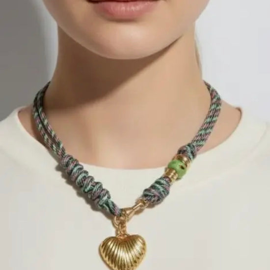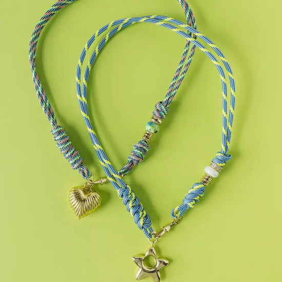 Elevate your everyday style with this striking rope necklace, crafted from vibrant nylon in a rich palette of colors. The piece features an elegant gold charm—choose between a delicate heart or star design—that adds a refined touch of sophistication. Perfect for layering or wearing solo, this versatile accessory brings contemporary flair to any ensemble while maintaining an understated elegance.