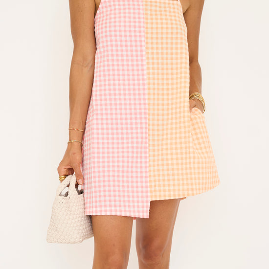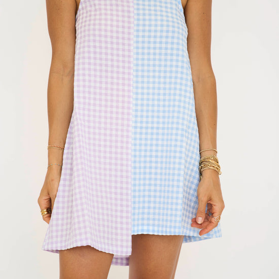 This airy, short dress showcases a captivating gingham color block design, perfect for those seeking an easy-going yet fashionable outfit. Made with a fabric blend of 50% Cotton, 48% Polyester, and 2% Spandex, it ensures a comfortable fit while the checkered pattern adds a touch of classic charm. Ideal for everyday wear, this dress encapsulates the essence of our brand - finding joy in the little moments of life.