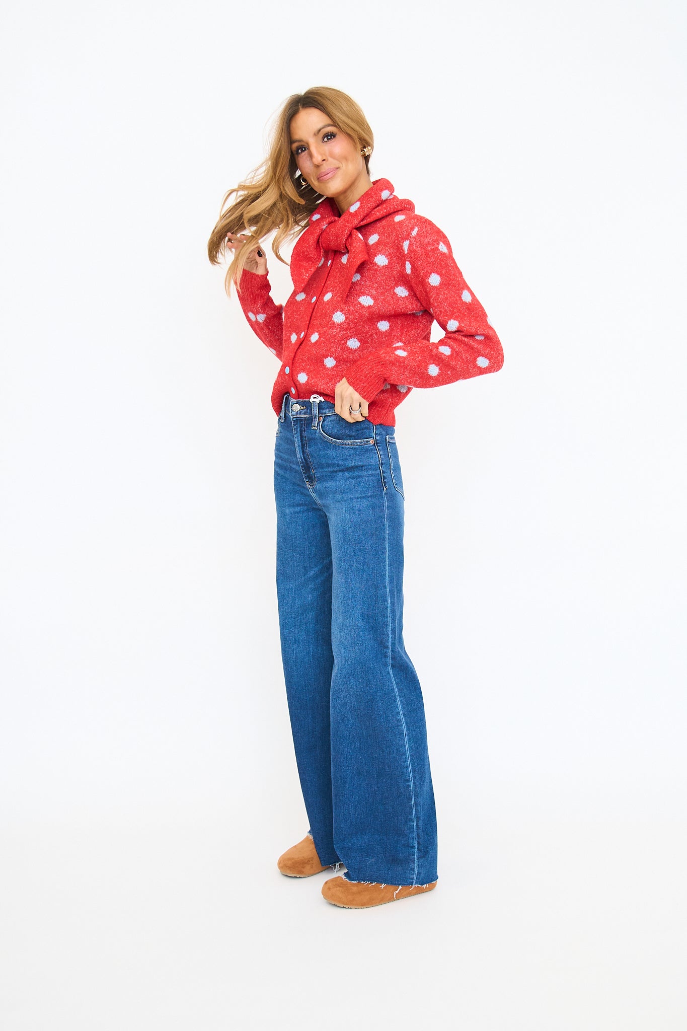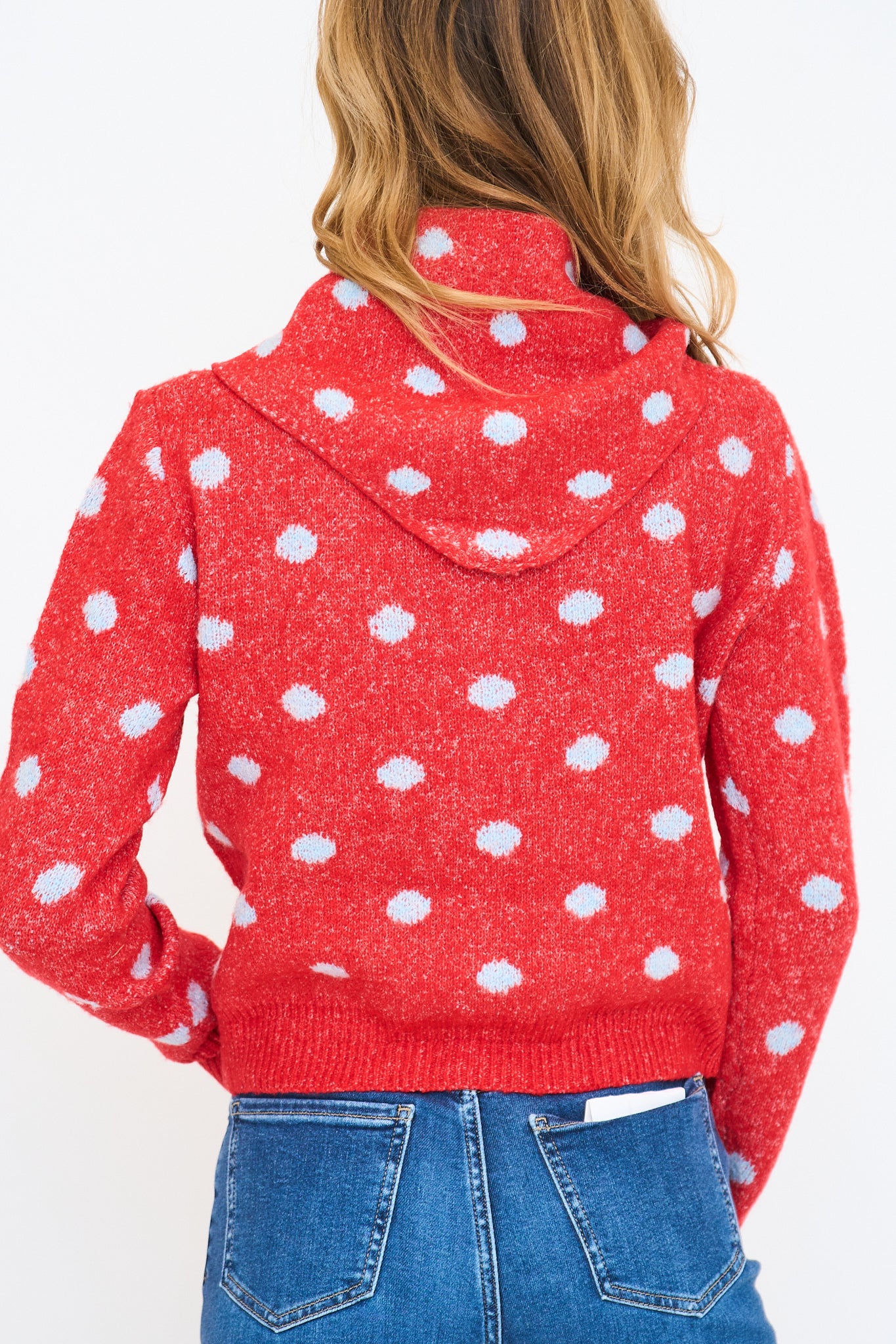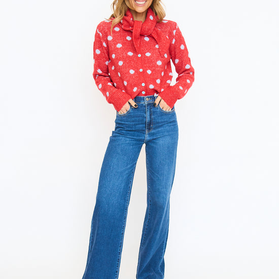 + Polka dot sweater cardigan with detachable scarf