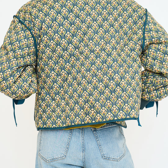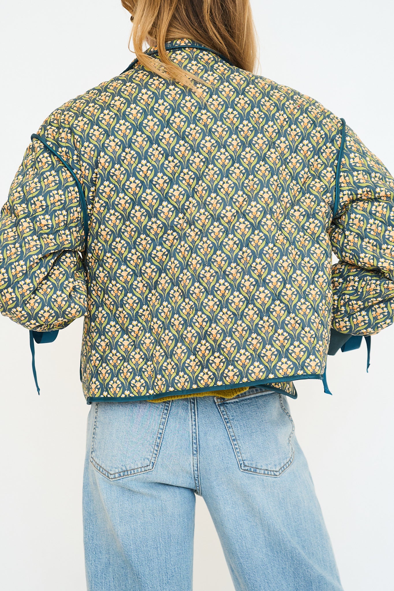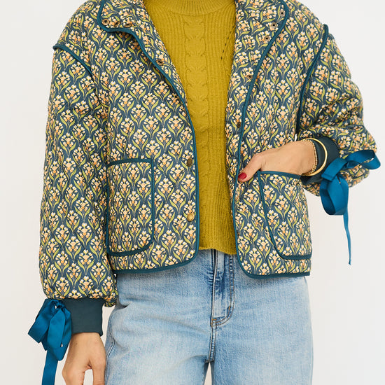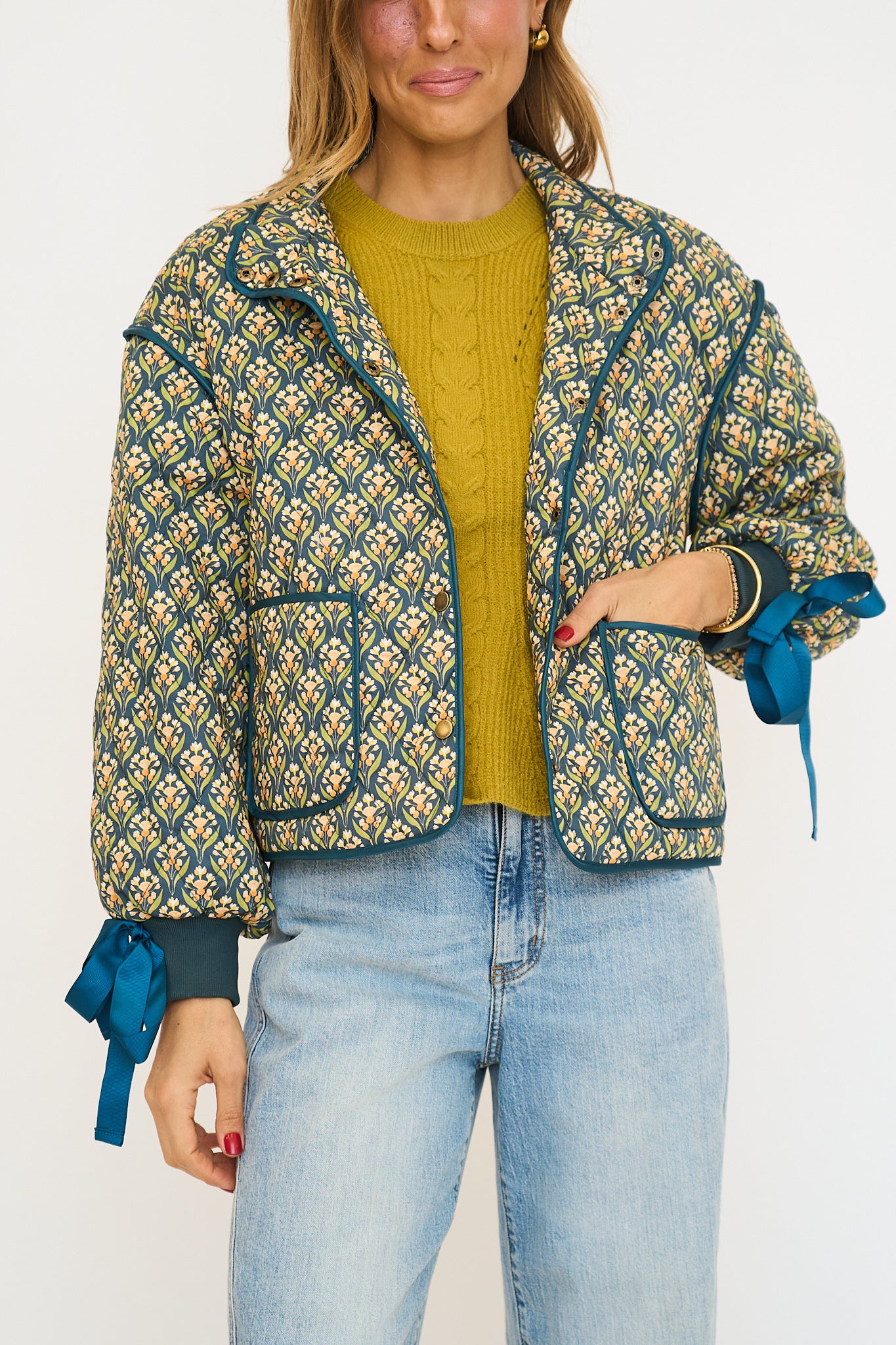 Floral Quilted Jacket with Ribbon Sleeve Detail