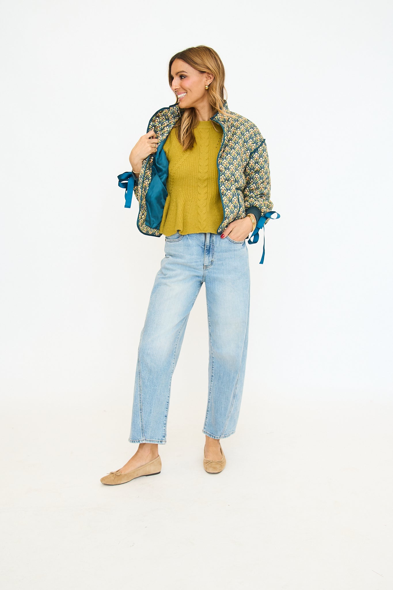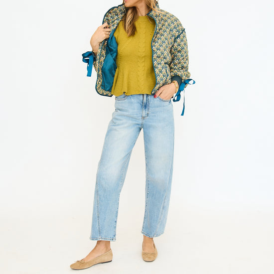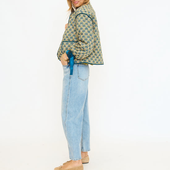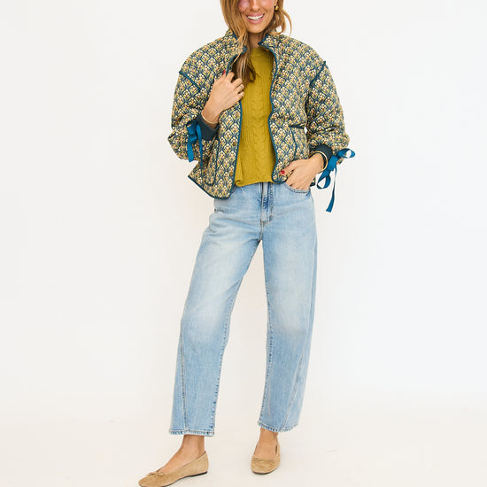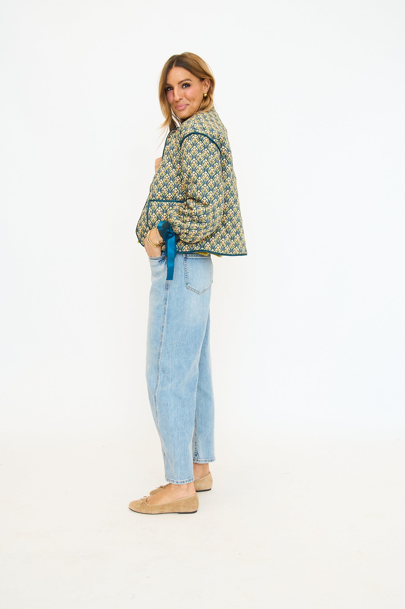 Floral Quilted Jacket with Ribbon Sleeve Detail
