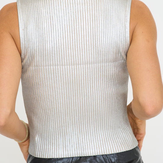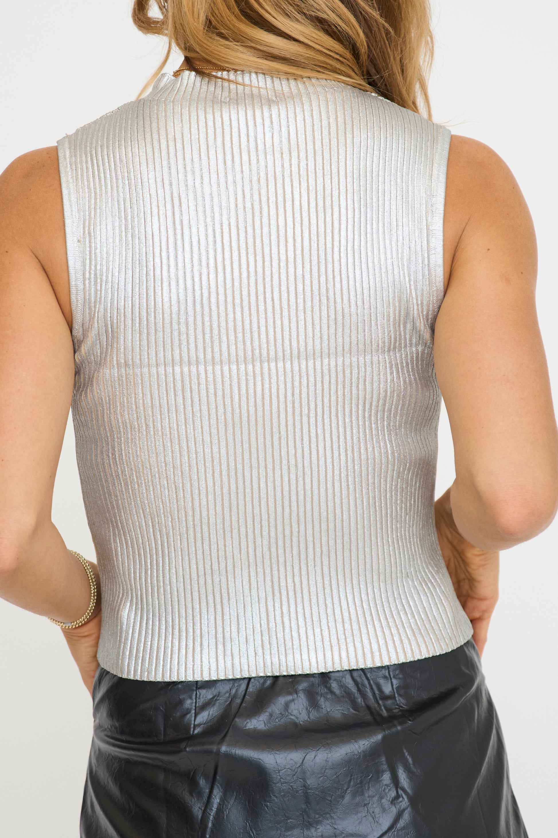 Unleash your chic and cool style with thr Miller Mockneck Top. This sleeveless, stylish top will add elegance to any outfit. Whether it's a casual day out or a night on the town, this trendy top will fit any occasion. Show off your playful side with its metallic hue and mock neck design.