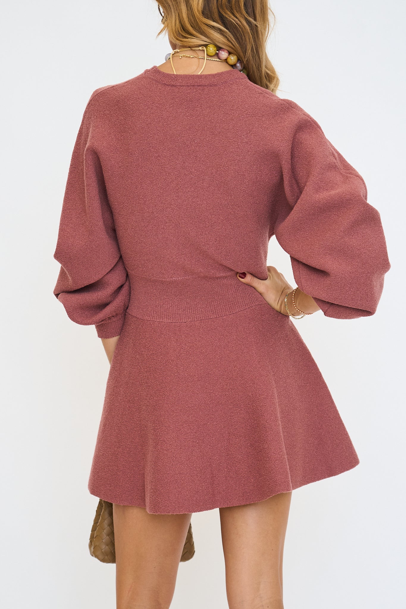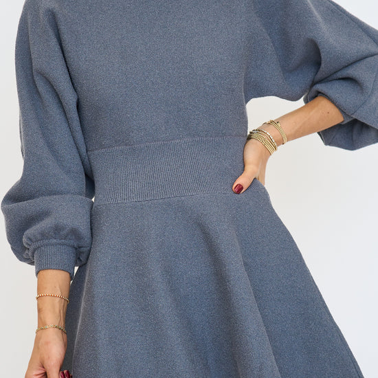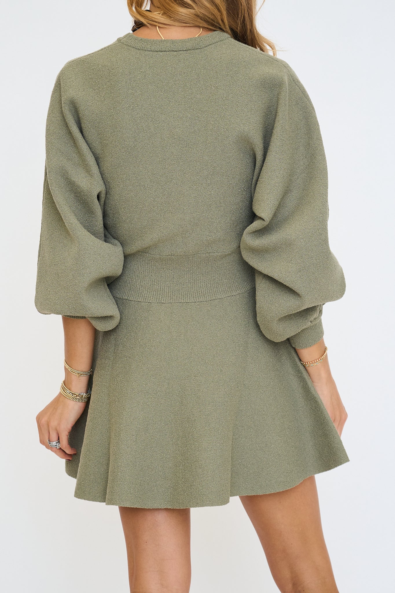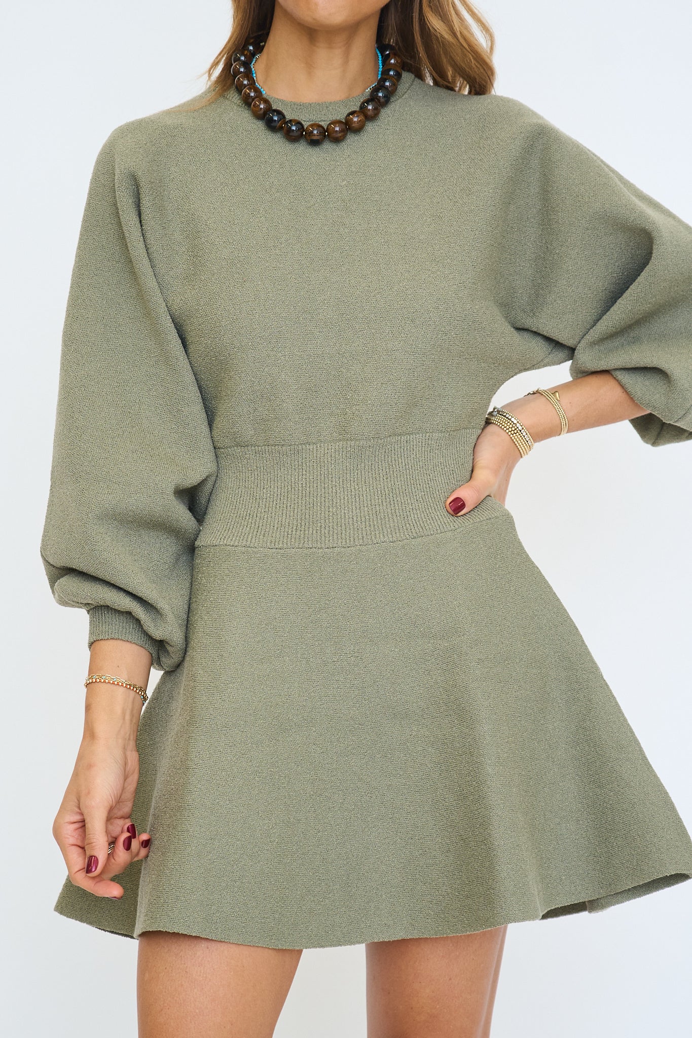 Balloon Sleeve Sweater Dress with fitted waist and flare skirt