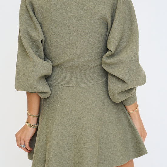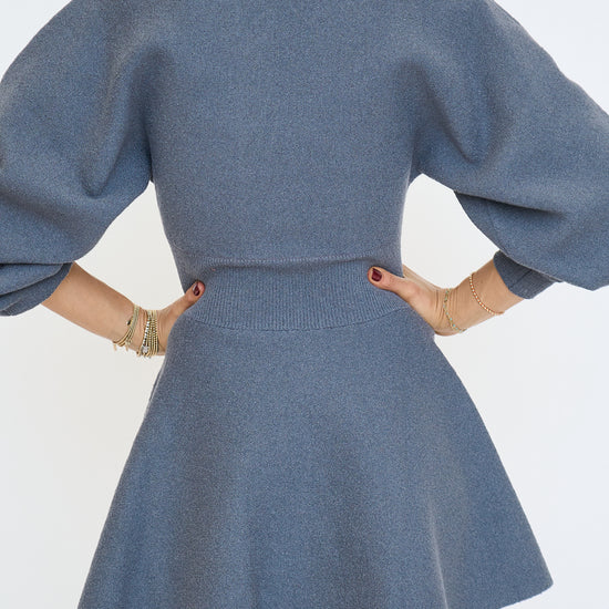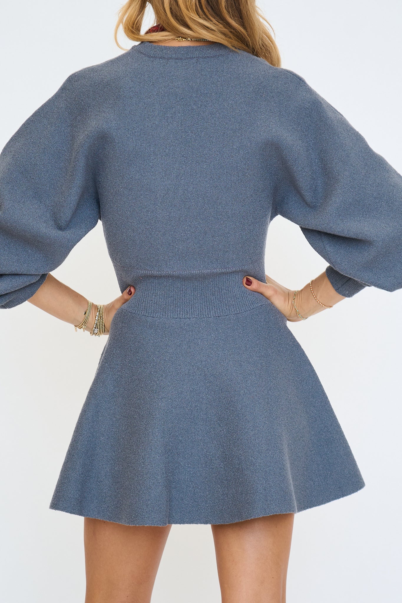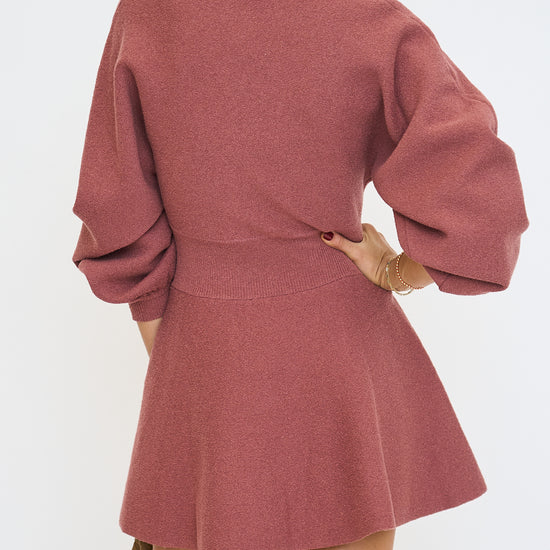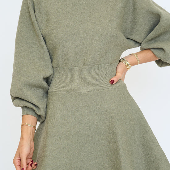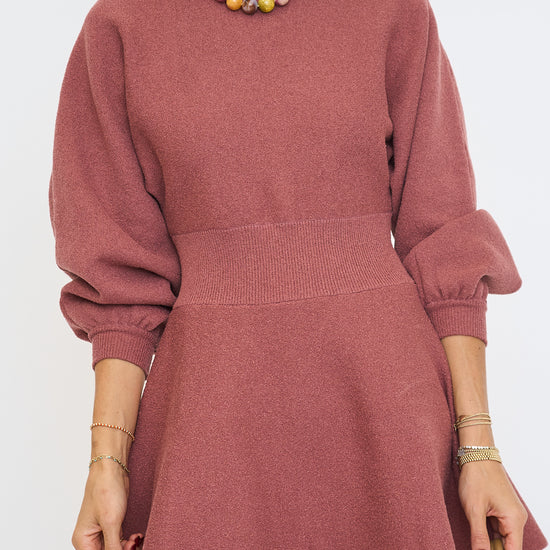 Balloon Sleeve Sweater Dress with fitted waist and flare skirt