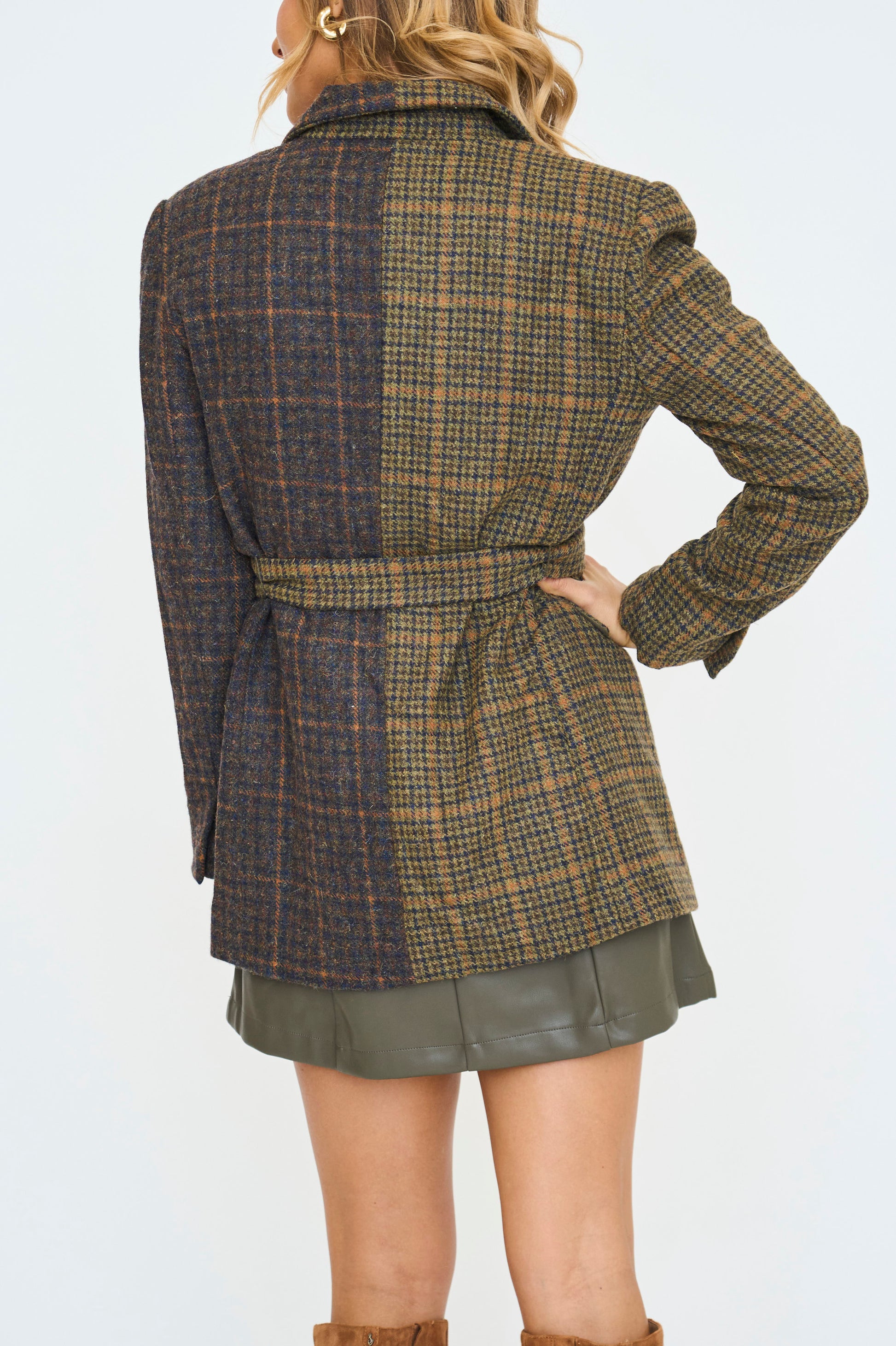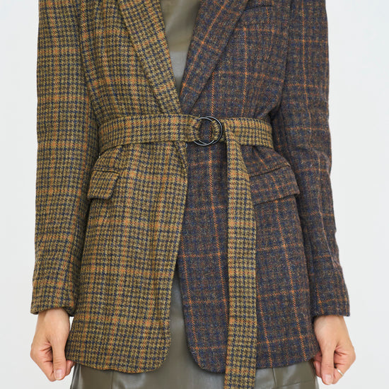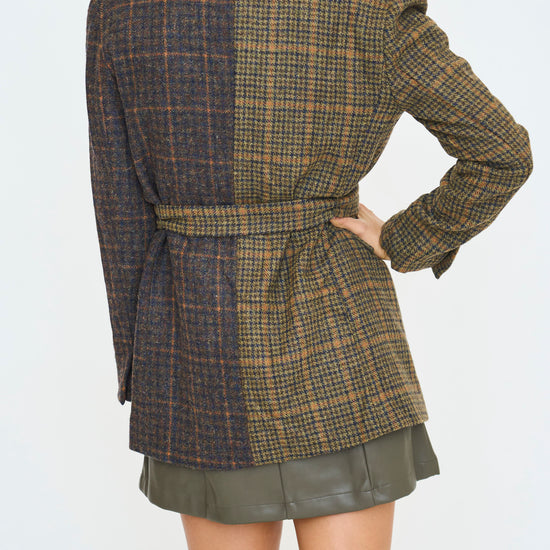 Mixed Plaid Belted Blazer