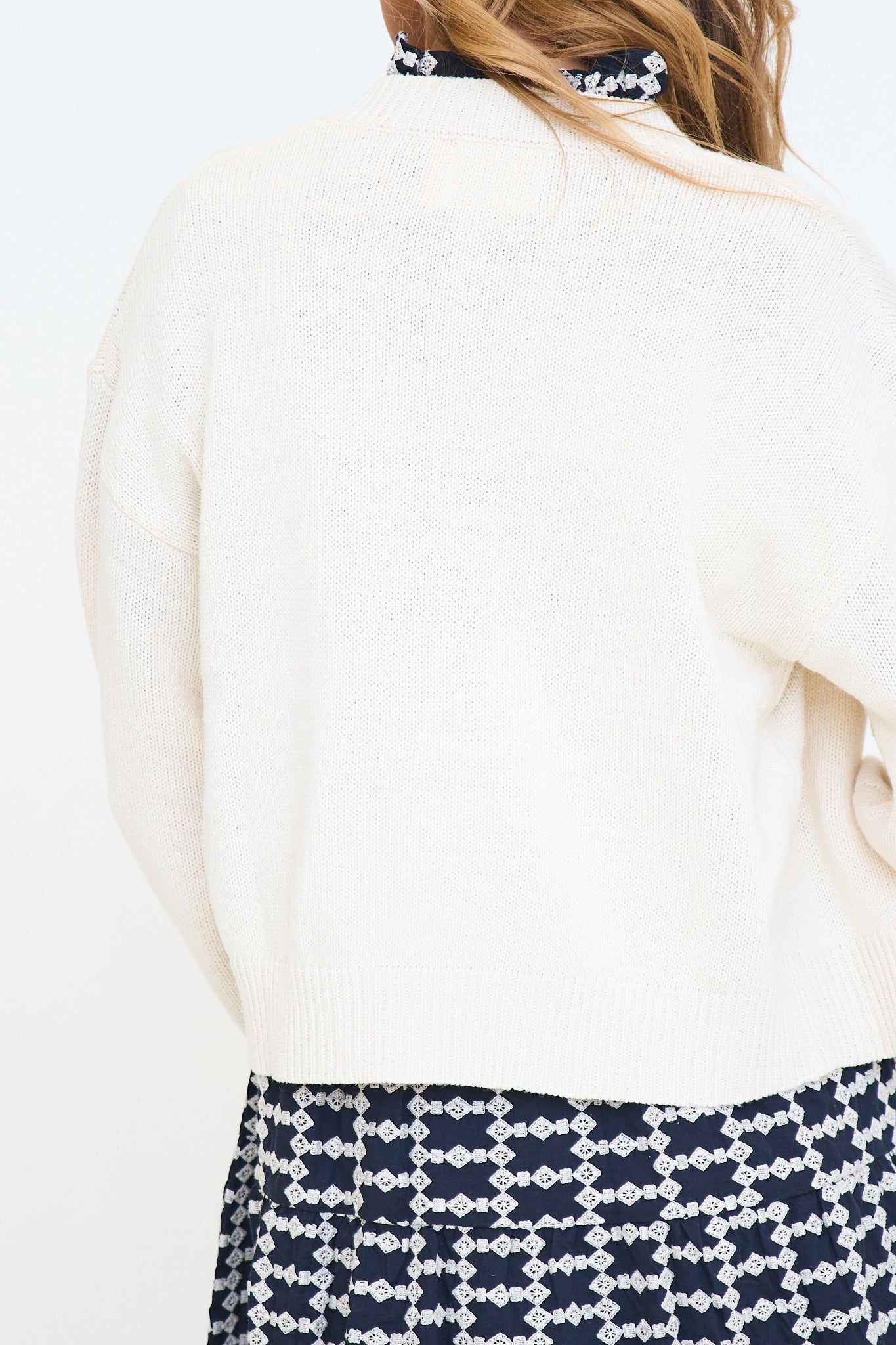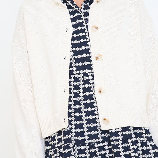The Lucy Cardigan is a semi-cropped cardigan with a boxy fit and drop shoulder, crafted from a mid-weight knit fabric for optimal warmth. Perfect for layering with high-waisted bottoms or dresses, it offers both style and comfort for any occasion.