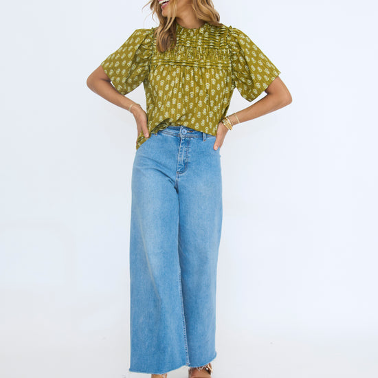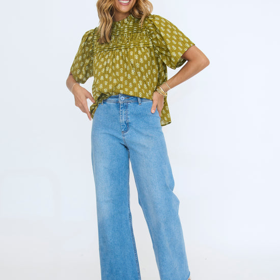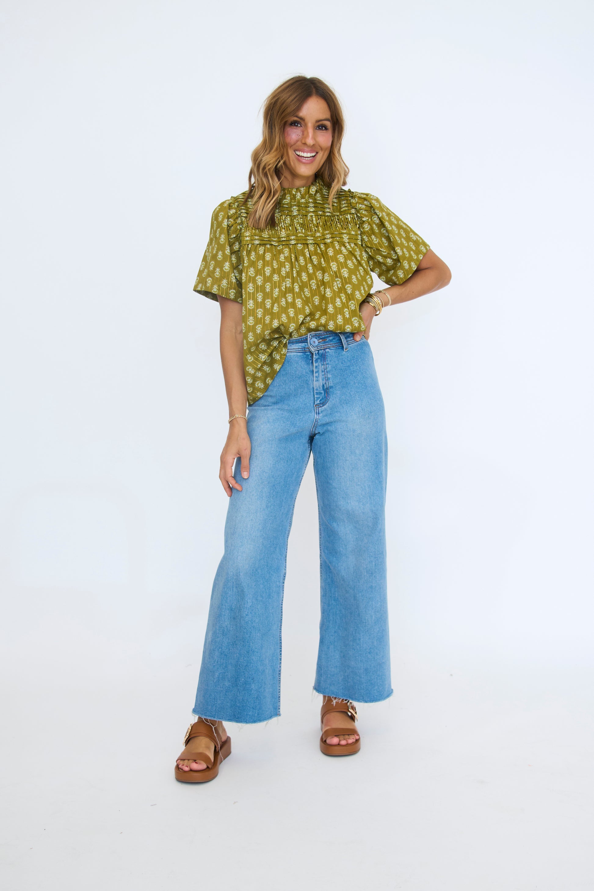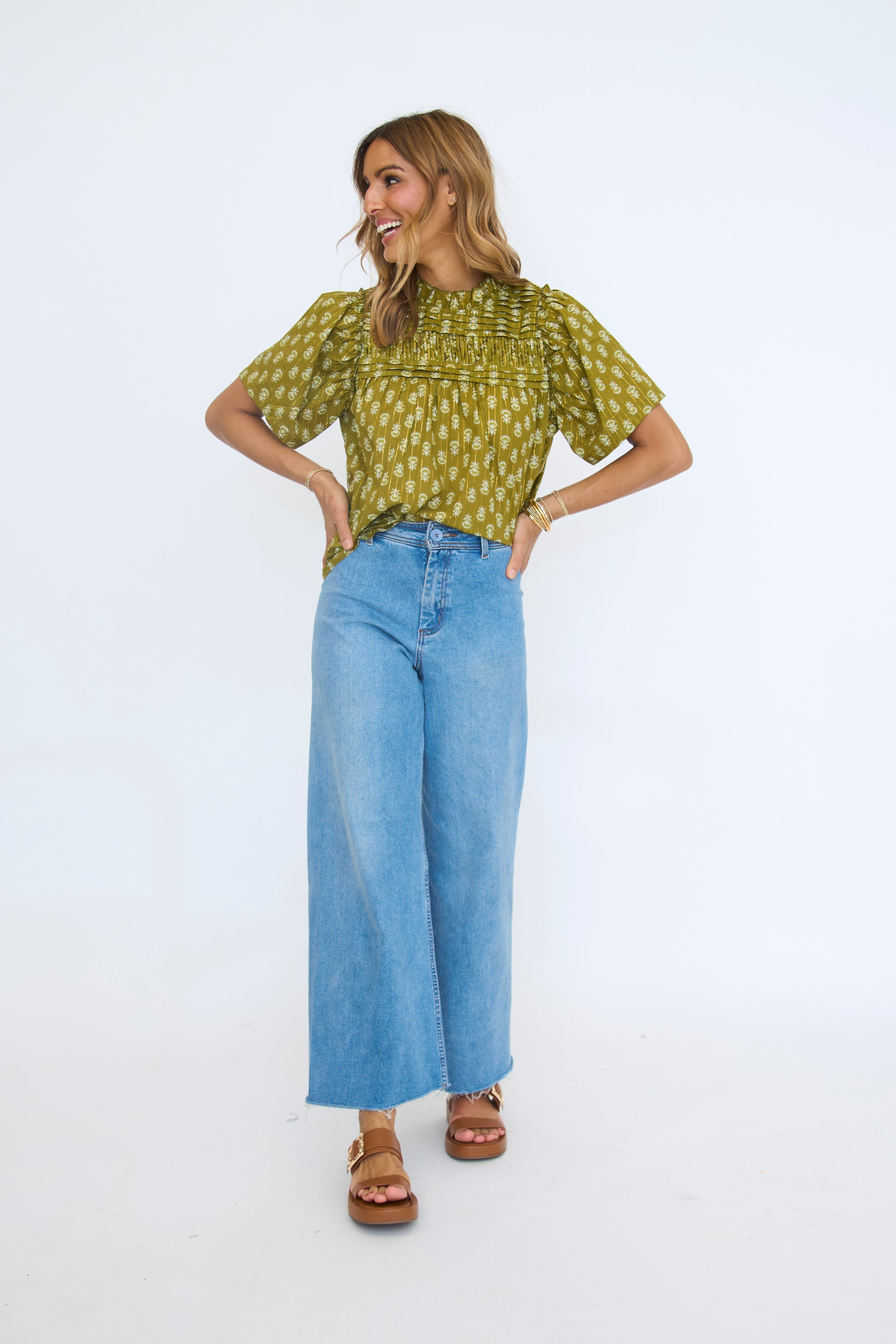 Fit is true to size or slightly generous. Size down if in between. Rachel is 5'8" wearing her true size small.