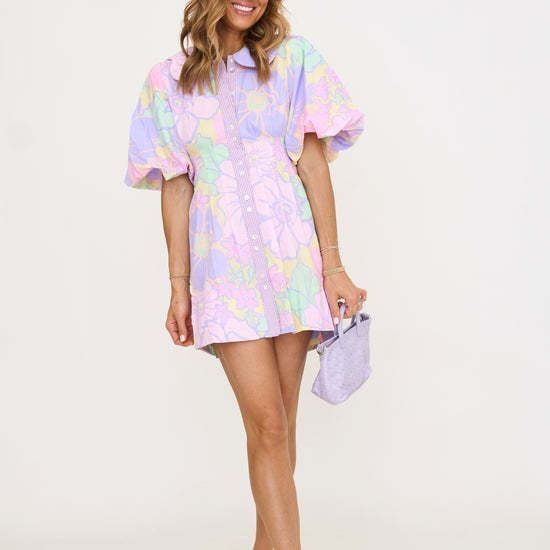 Runs small - size up! Rachel is 5'8" wearing a small, but could take a medium as well.