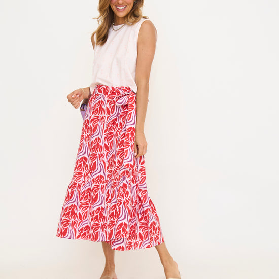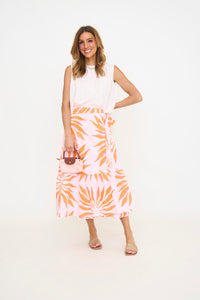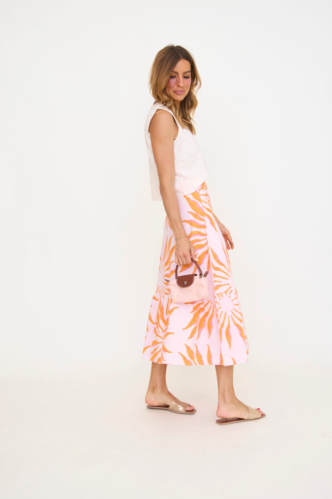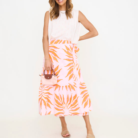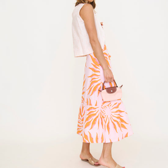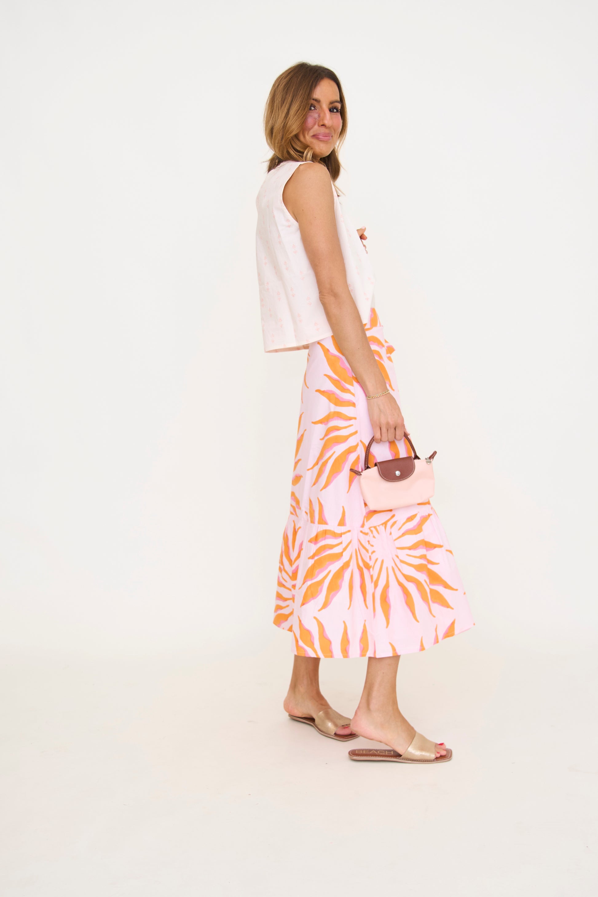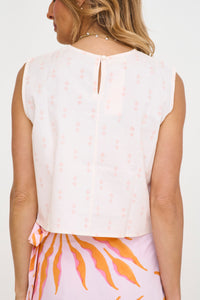 Our Peach Staghorn Boxy Top is just so cute and comfortable and goes perfectly with our wrap skirts as well as your favorite high-waisted jeans or skirts. The Boxy Top fit is shorter and a bit wider across the hem. There is a button closure at the neck.