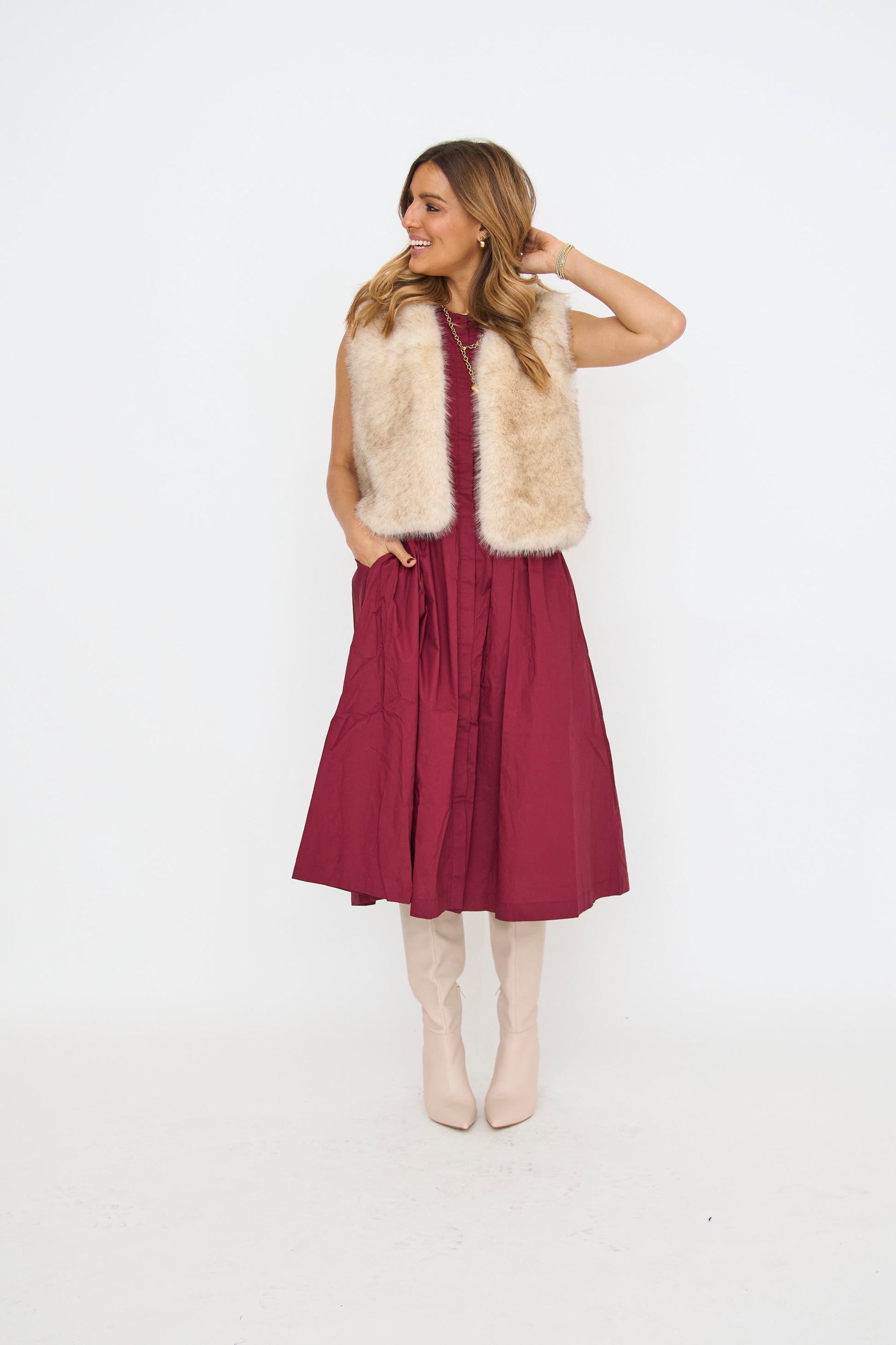 This stunning Pleated Shoulder Midi Dress can take you from your desk to your evening out. Featuring a stand collar with a placket pleated shoulder and sleeveless design for maximum comfort this midi length dress is perfect for any occasion. Show off your fashion-forward style with a look that emphasizes your unique silhouette. Get this midi dress today and be the envy of your friends as you make a bold statement in this must-have ensemble.