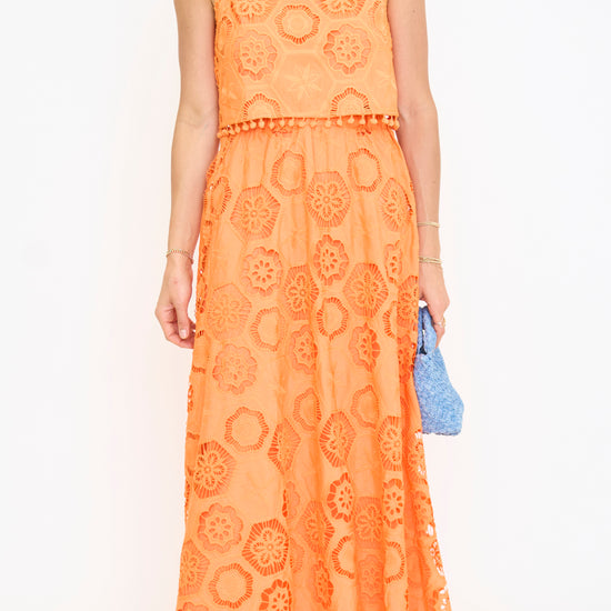 Pom Pom Embroidered Maxi Skirt Set