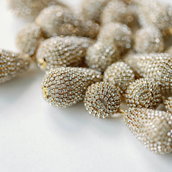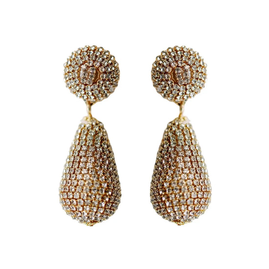 Elevate your holiday party look with these stunning tear-drop shaped earrings wrapped in shimmering rhinestones. Perfectly sized at a little over 2”, these effortlessly add a touch of glamour and sophistication to your festive holiday ensembles.