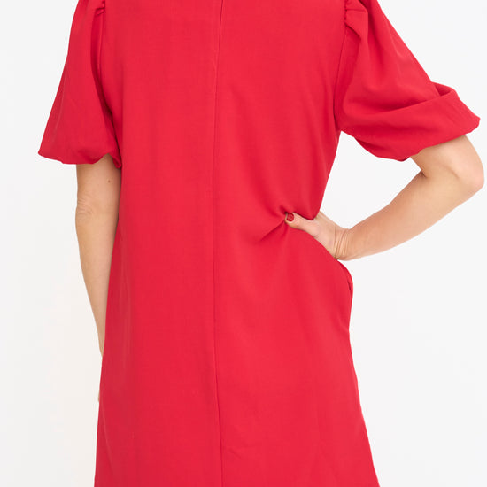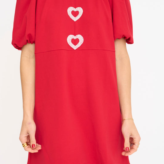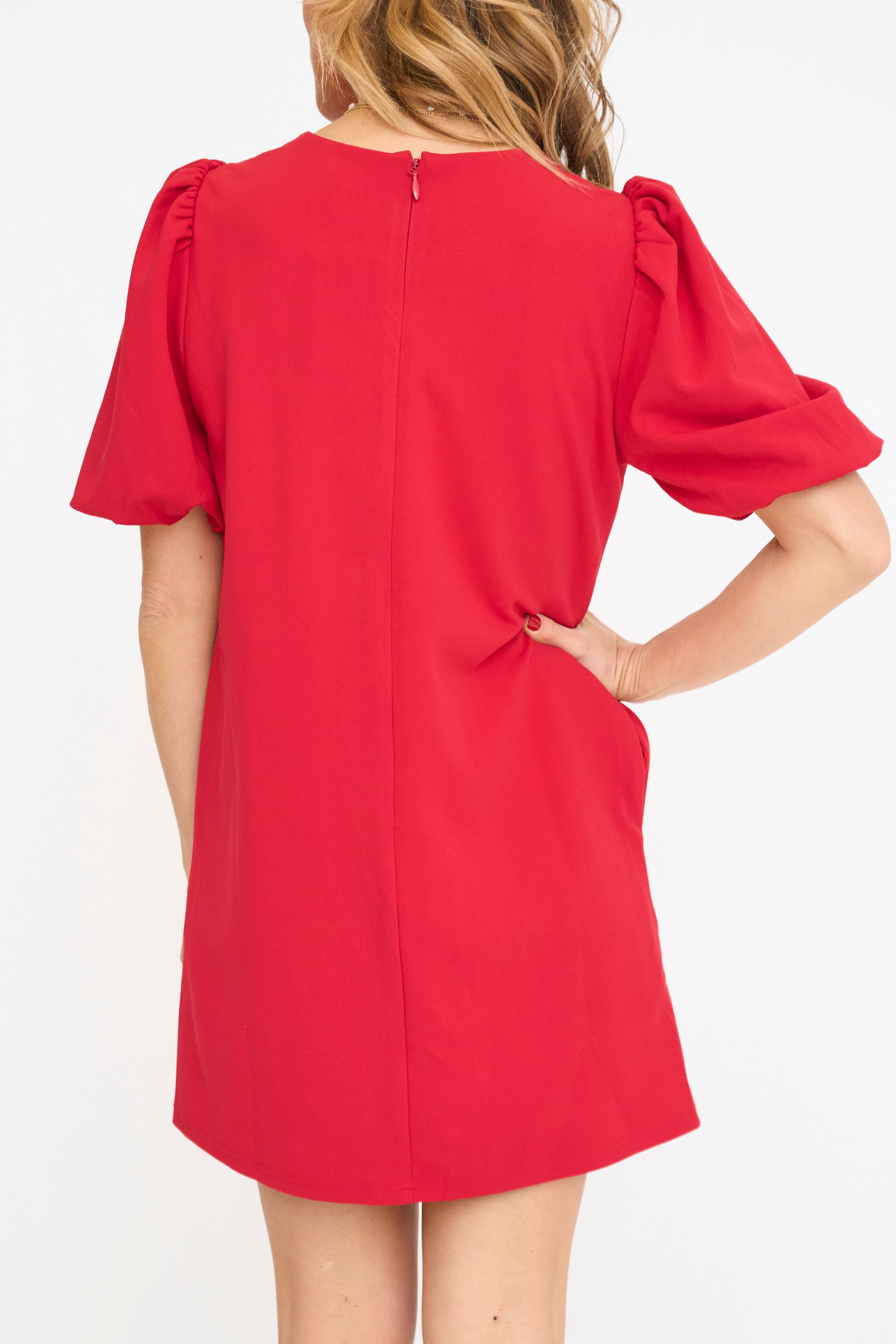 Feel the love and sweet vibes in your look when you wear the Ruby Heart Shift Mini Dress. A front cut-out with heart jewel decor adds a touch of elegance to this solid mini dress. Short puff sleeves give it volume. Pair it with black strappy heels and matching accessories.
