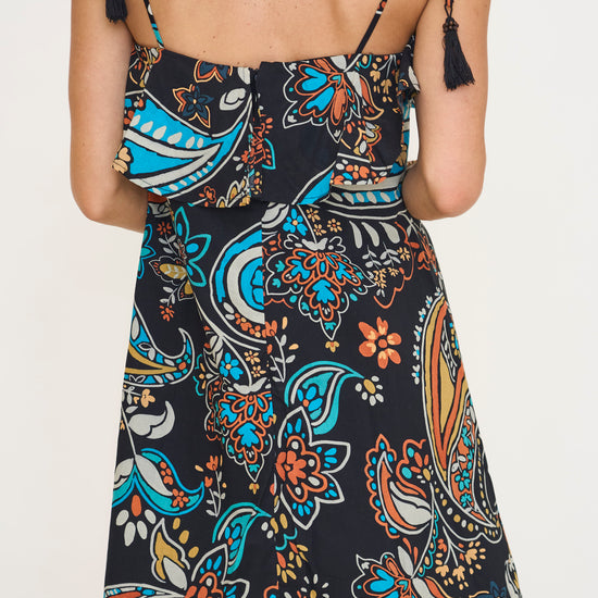 Sadie Paisley Print Ruffled Mini Dress with Tassel