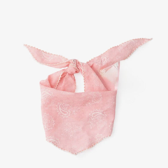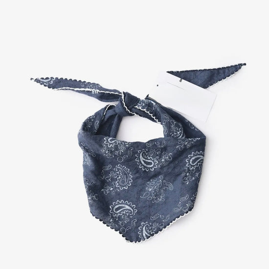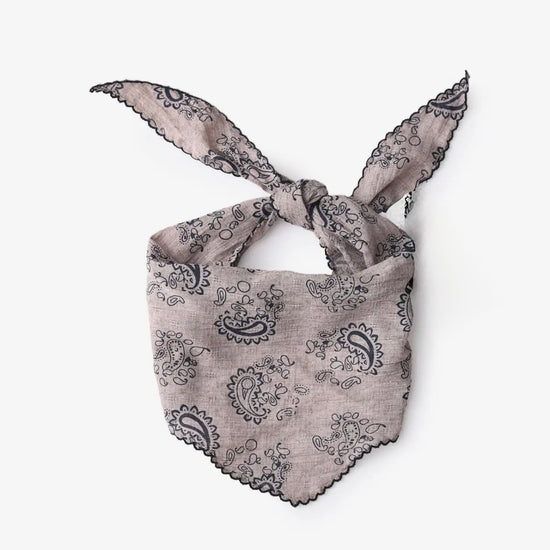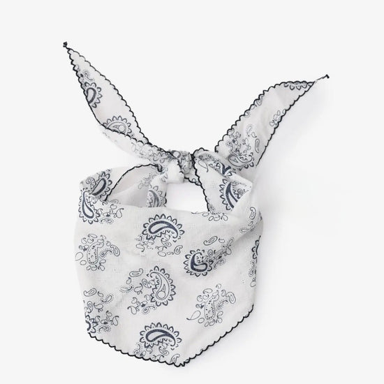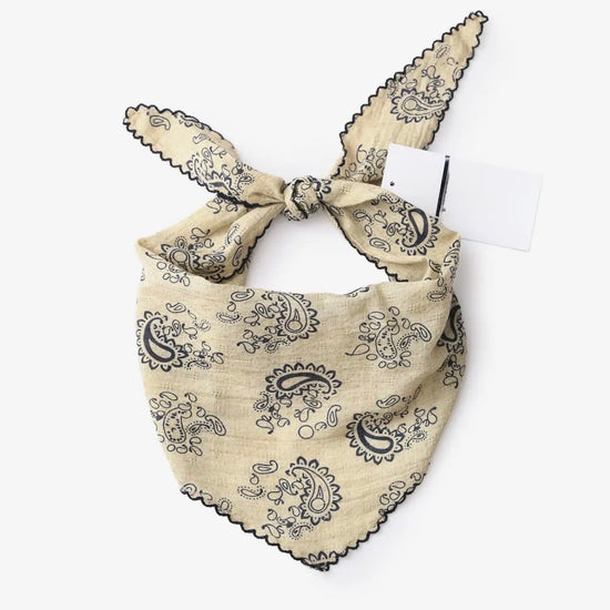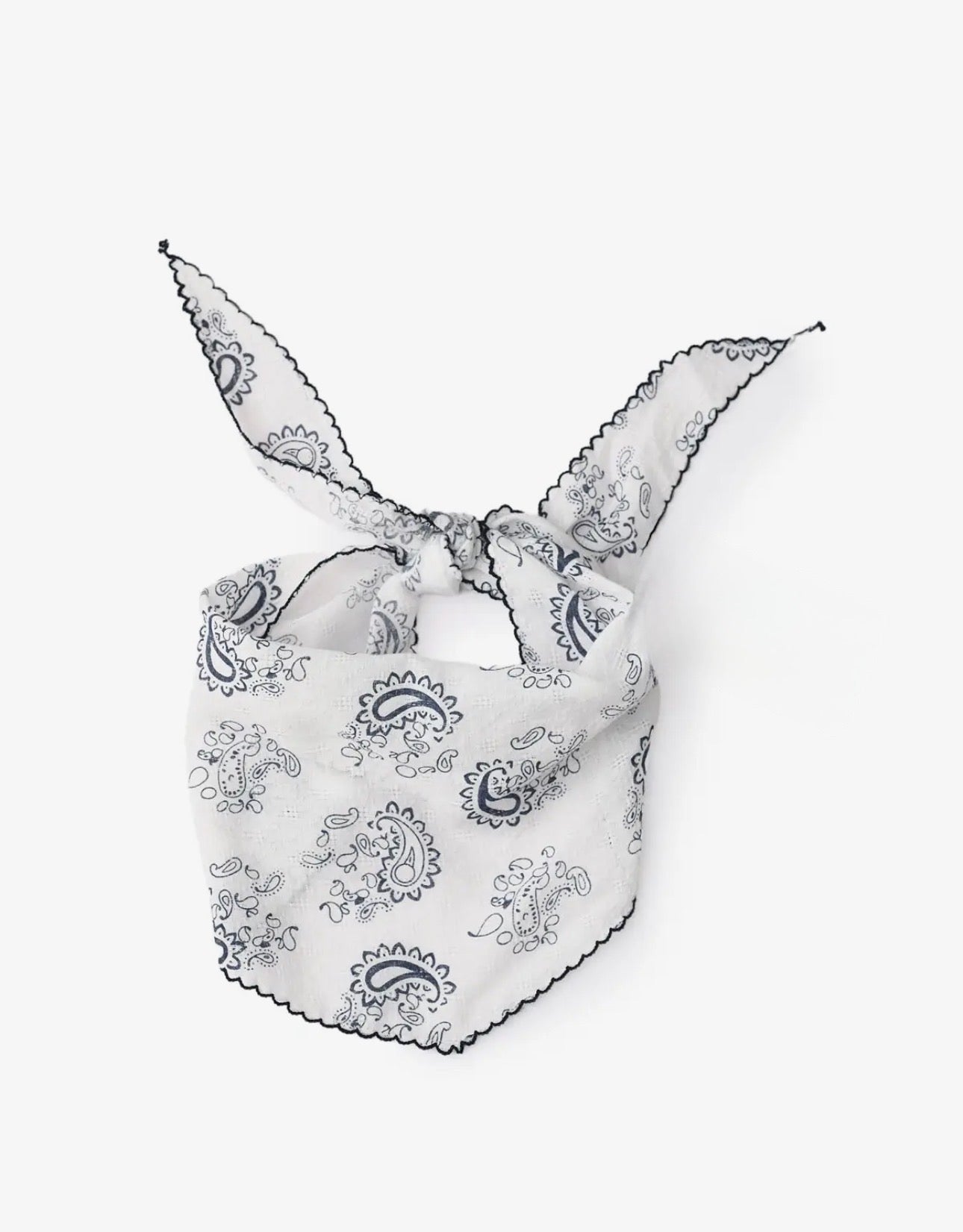 A hint of vintage, a touch of western—Vintage Paisley Tie Scarf reinvents a timeless print for modern styling. With its elongated rectangular shape and scalloped edge finish, this scarf can be knotted at the neck, wrapped as a hair accessory, or tied to a tote. The paisley pattern adds subtle movement and charm to each look.