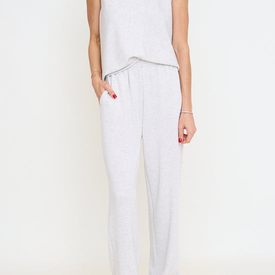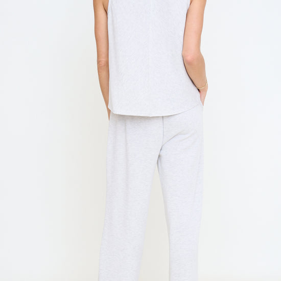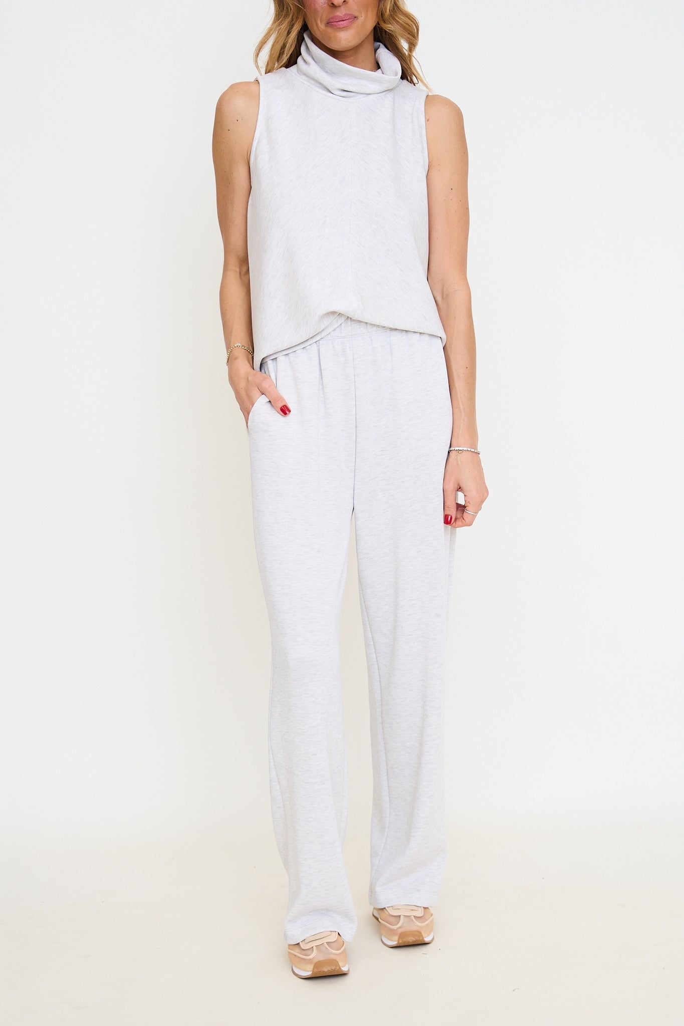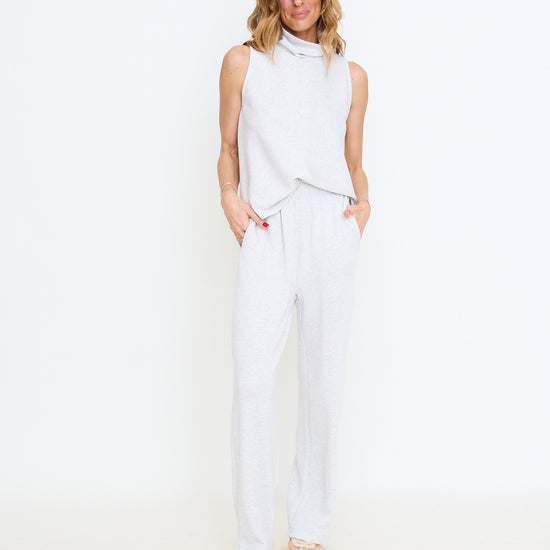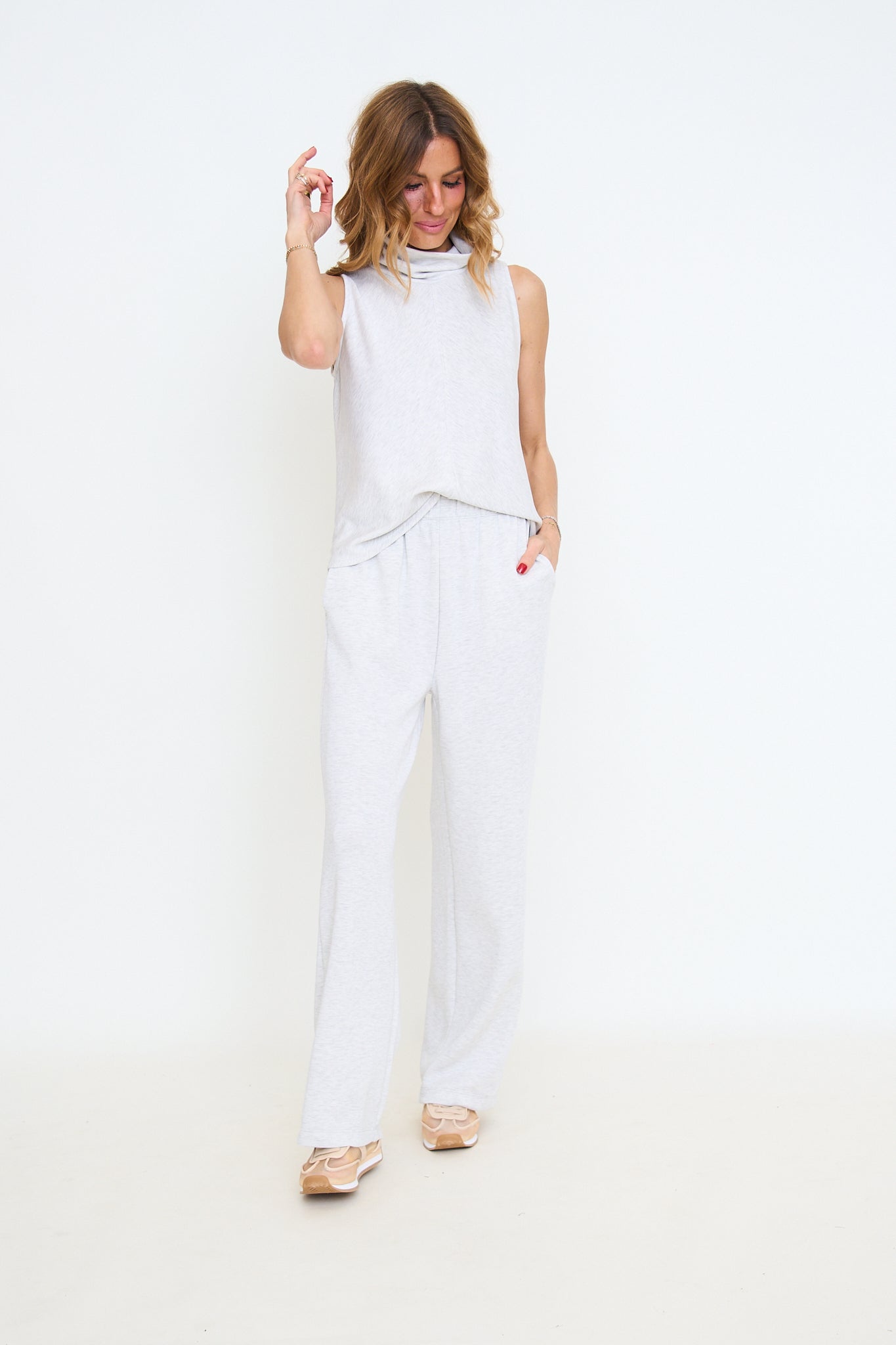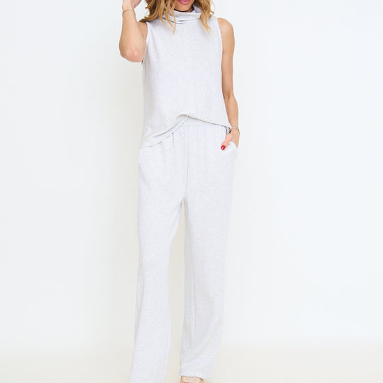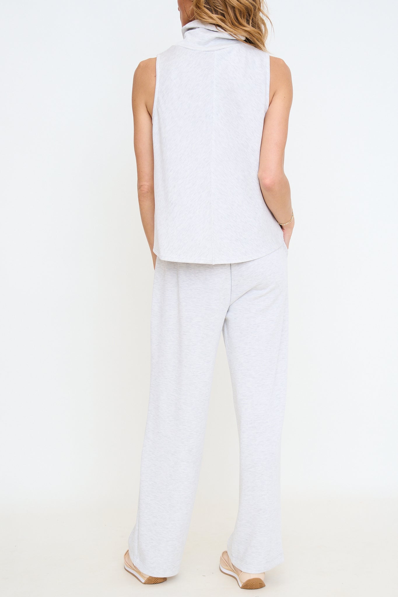 Sleeveless mock neck top with matching high waisted full length pants in a super soft scuba material