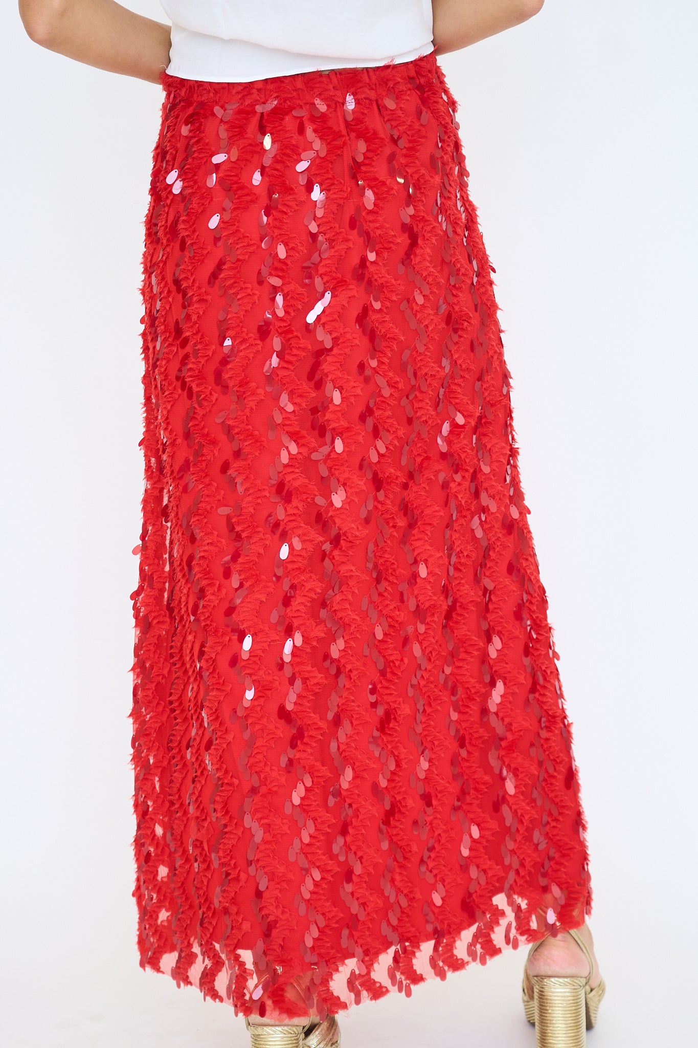 Catch the light with every step in this sequin maxi skirt, where effortless glamour meets modern edge. The full-length silhouette glides with movement, while all-over sequins offer a bold yet wearable shimmer. Style it with a crisp button-down for a high-low contrast or keep it sleek with a fitted top-either way, you're making an entrance.