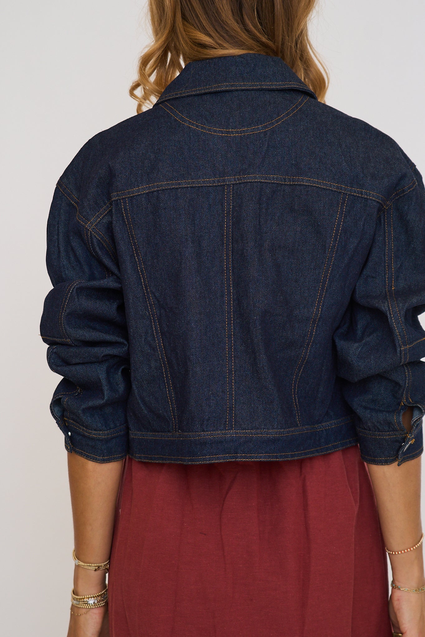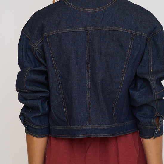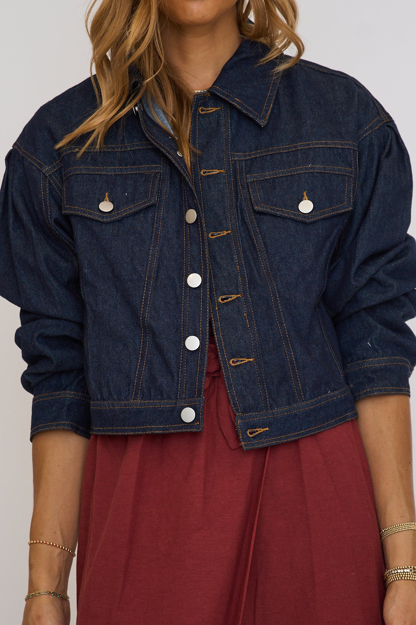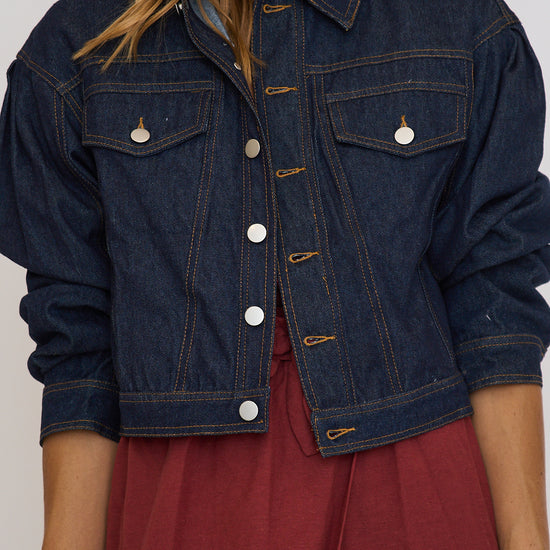 - Pleat Balloon Sleeve Denim Crop Jacket