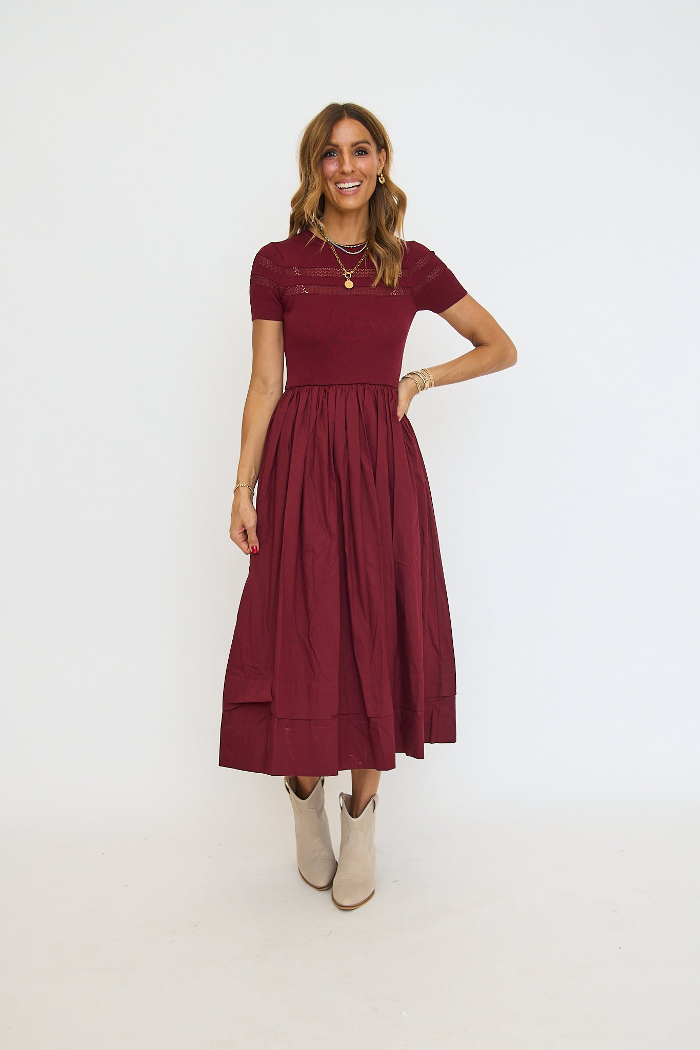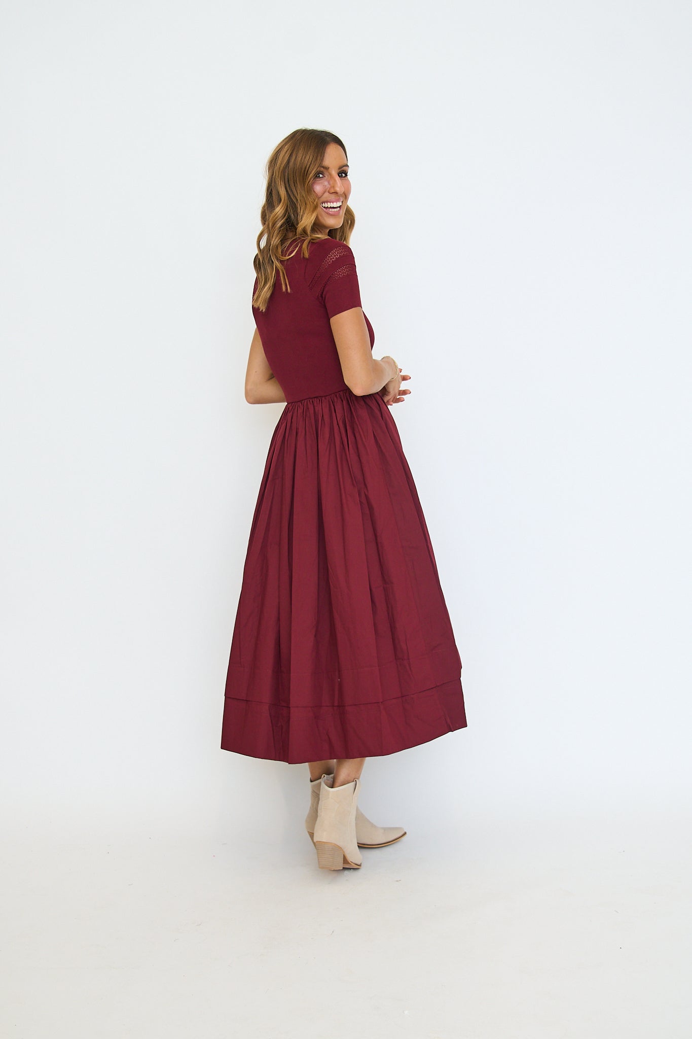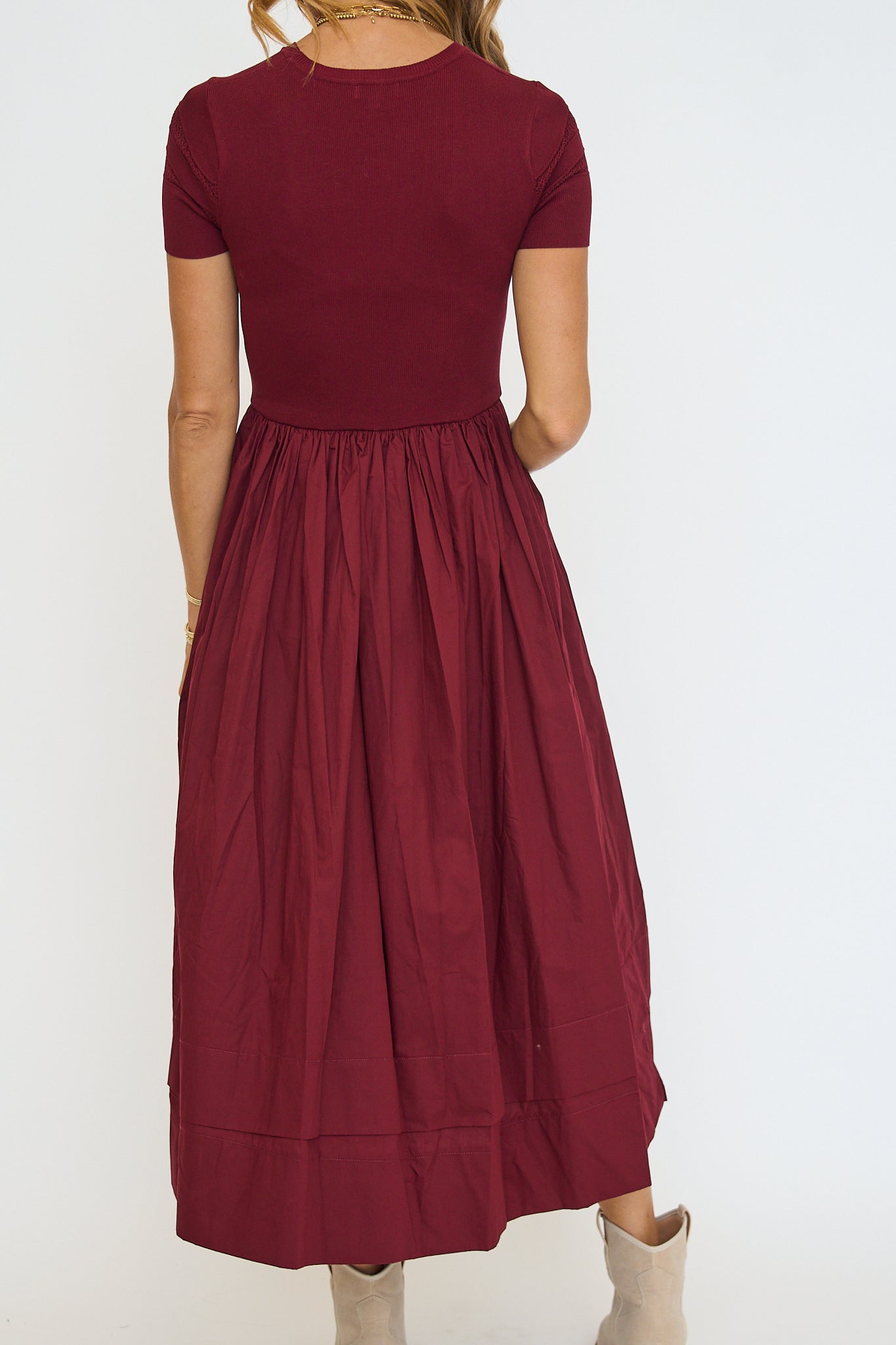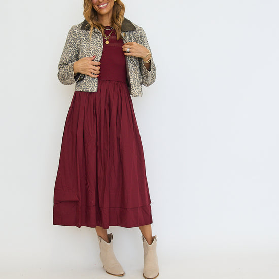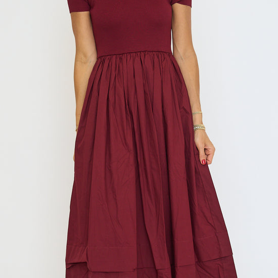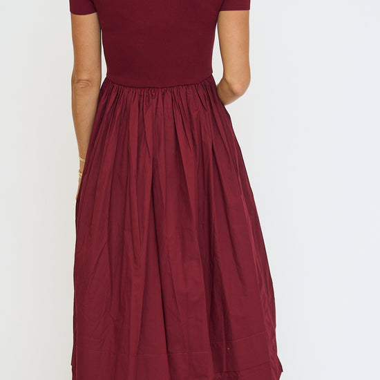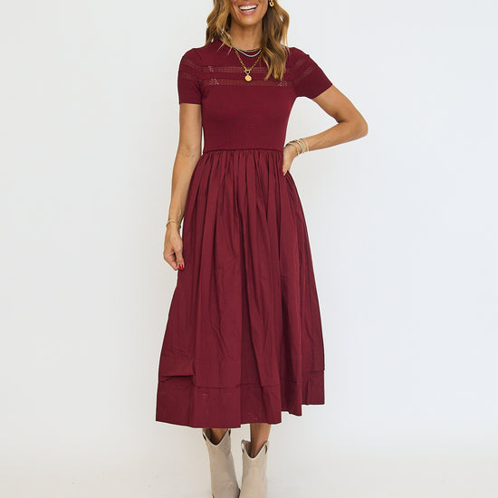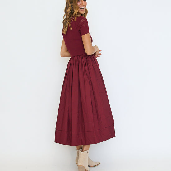 Sheer Trim Midi Dress - Oxblood