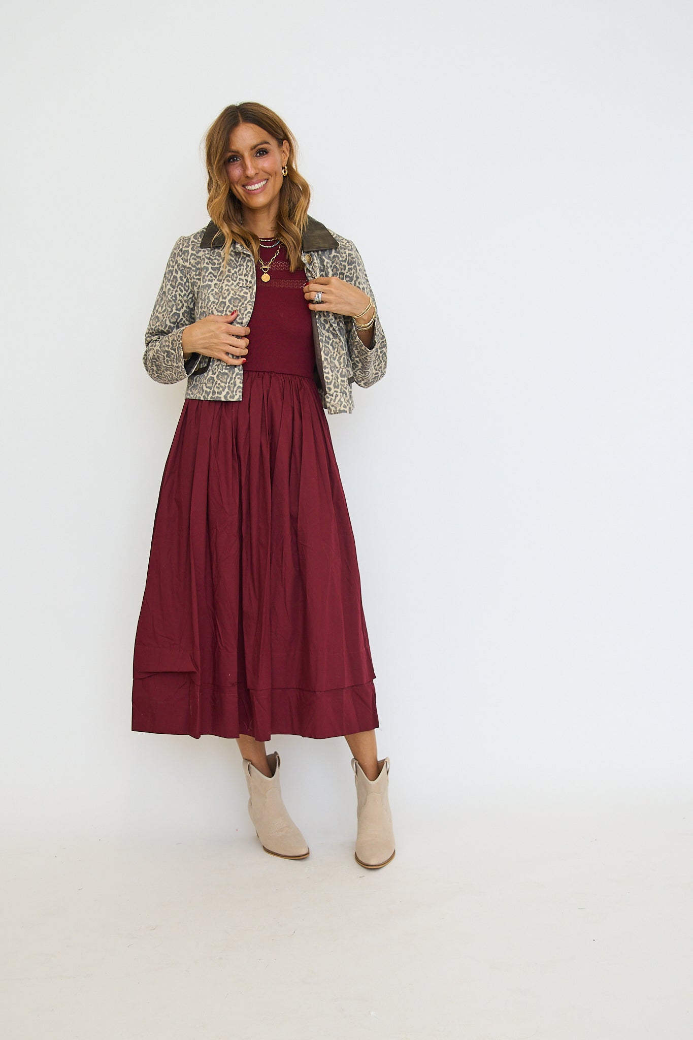 - Full gathered skirt with midi length hemline