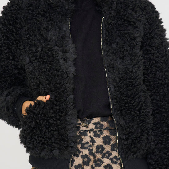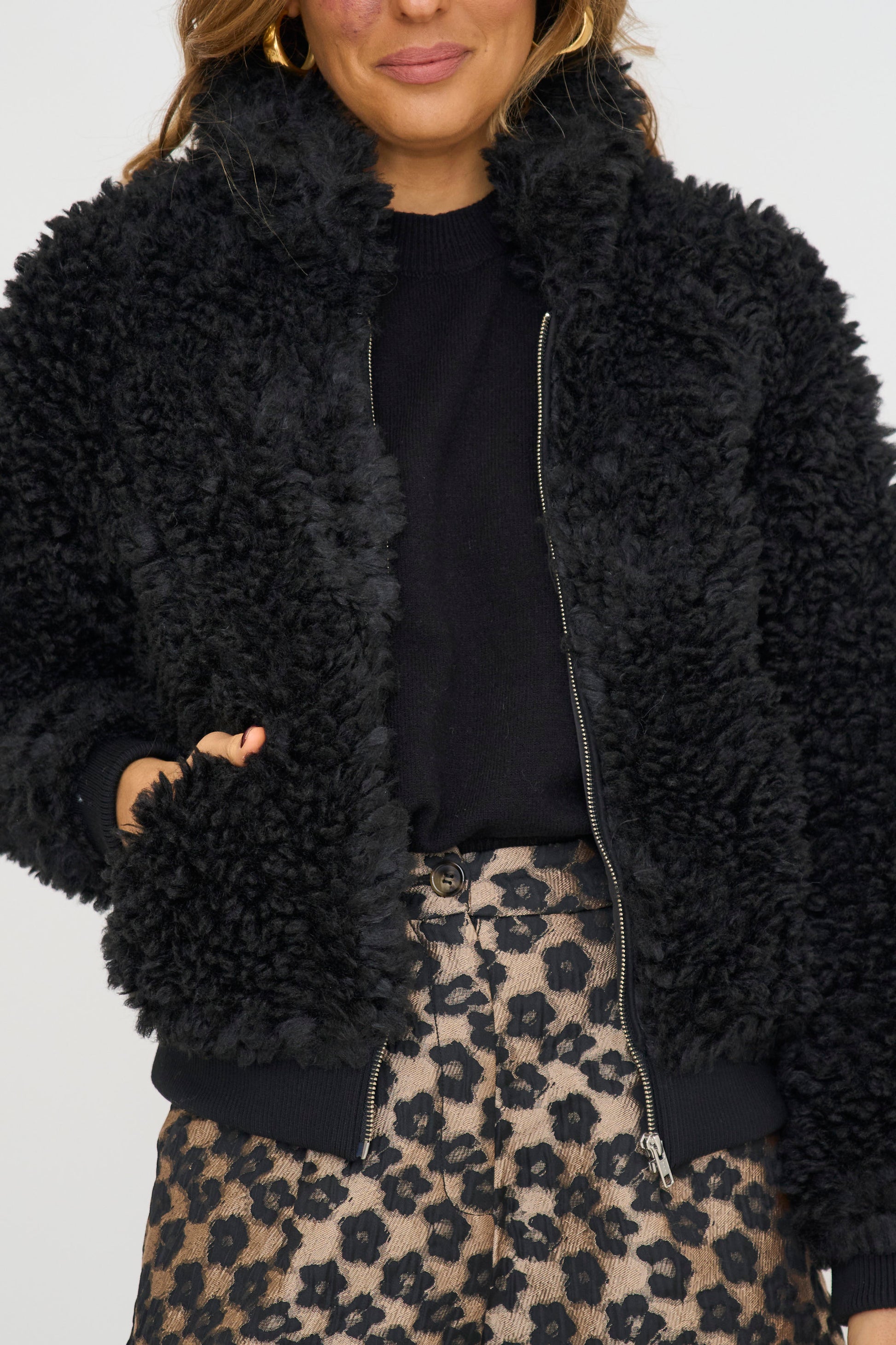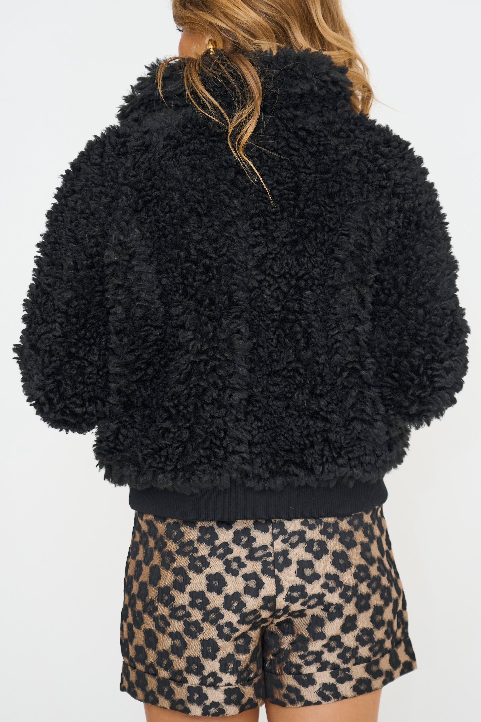 Super soft and cozy, we are currently obsessing over this new arrival. A fluffy, sherpa fabrication fills out a bomber jacket silhouette for an updated look to this cozy vibe. We are loving the cool weather vibes that this look gives - perfect for the upcoming fall and winter season.