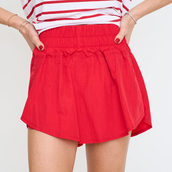 Active skort with wide elastic waistband