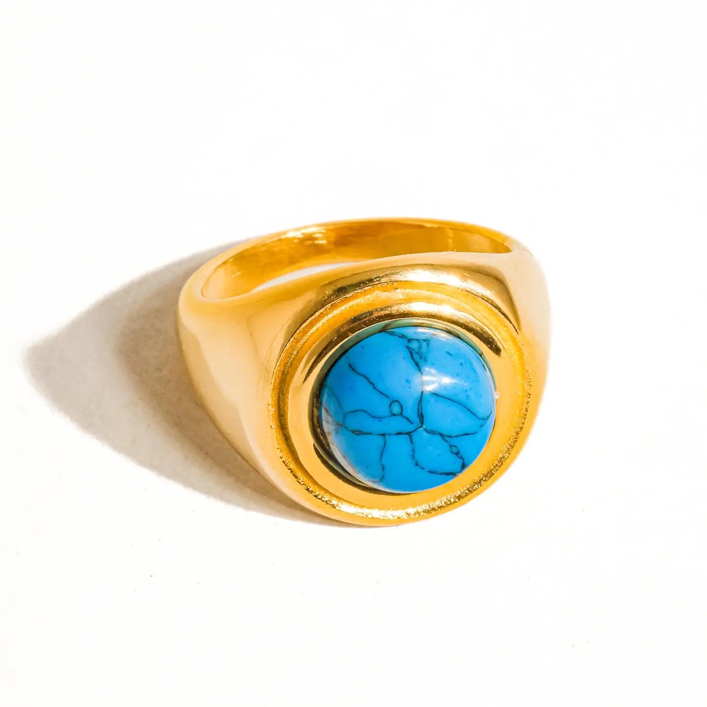 18K Gold Non-Tarnish Turquoise Stone Ring