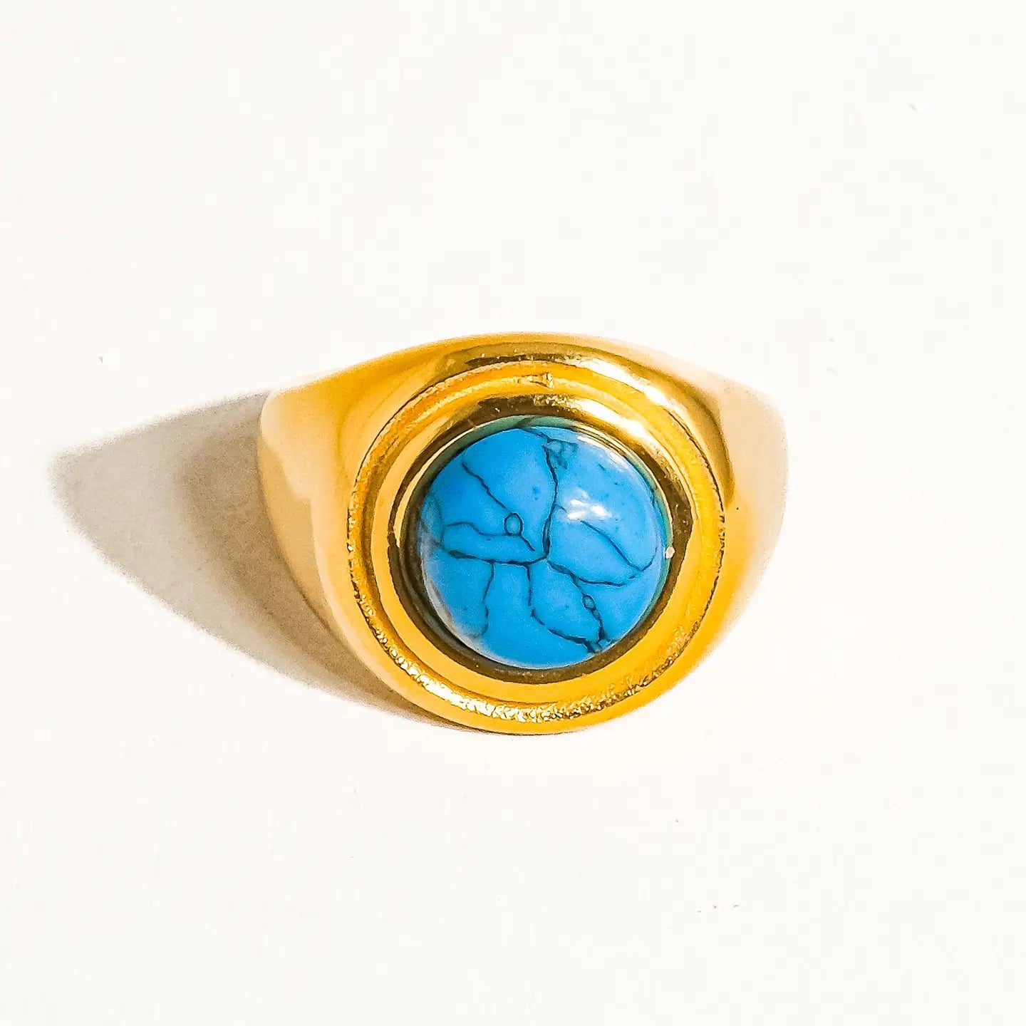 Simone 18K Gold Non-Tarnish Turquoise Stone Ring