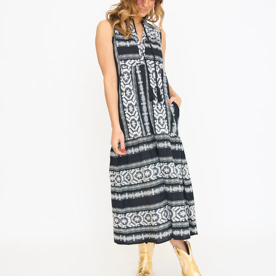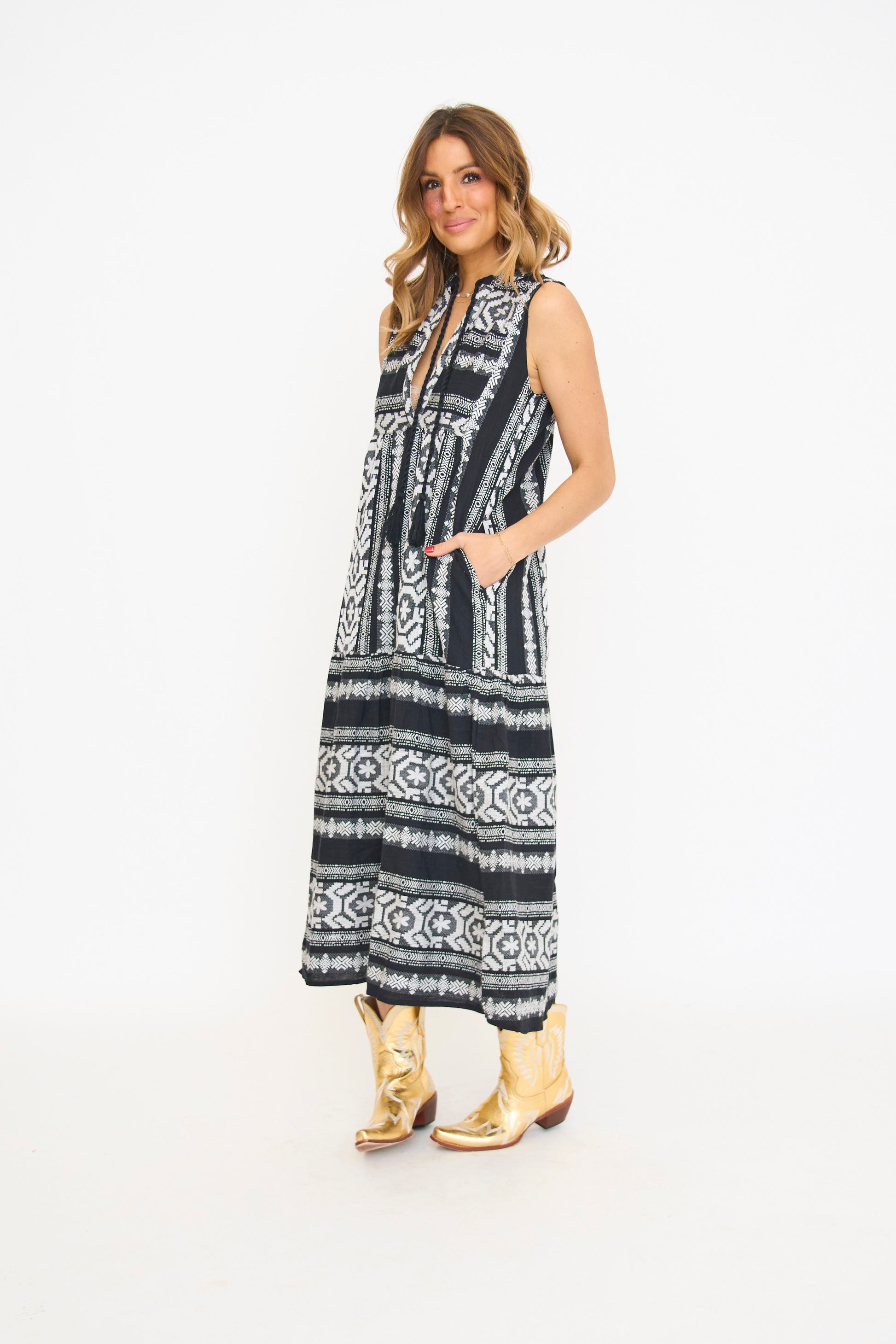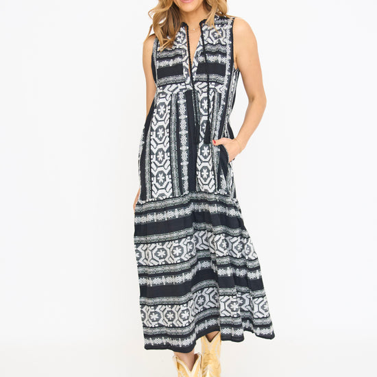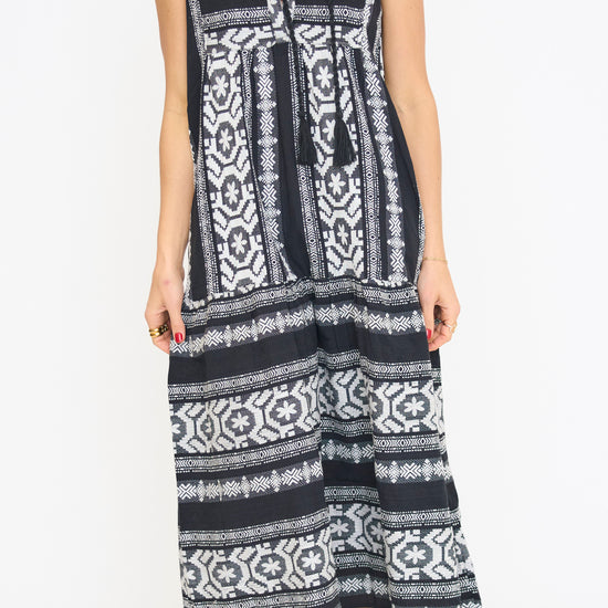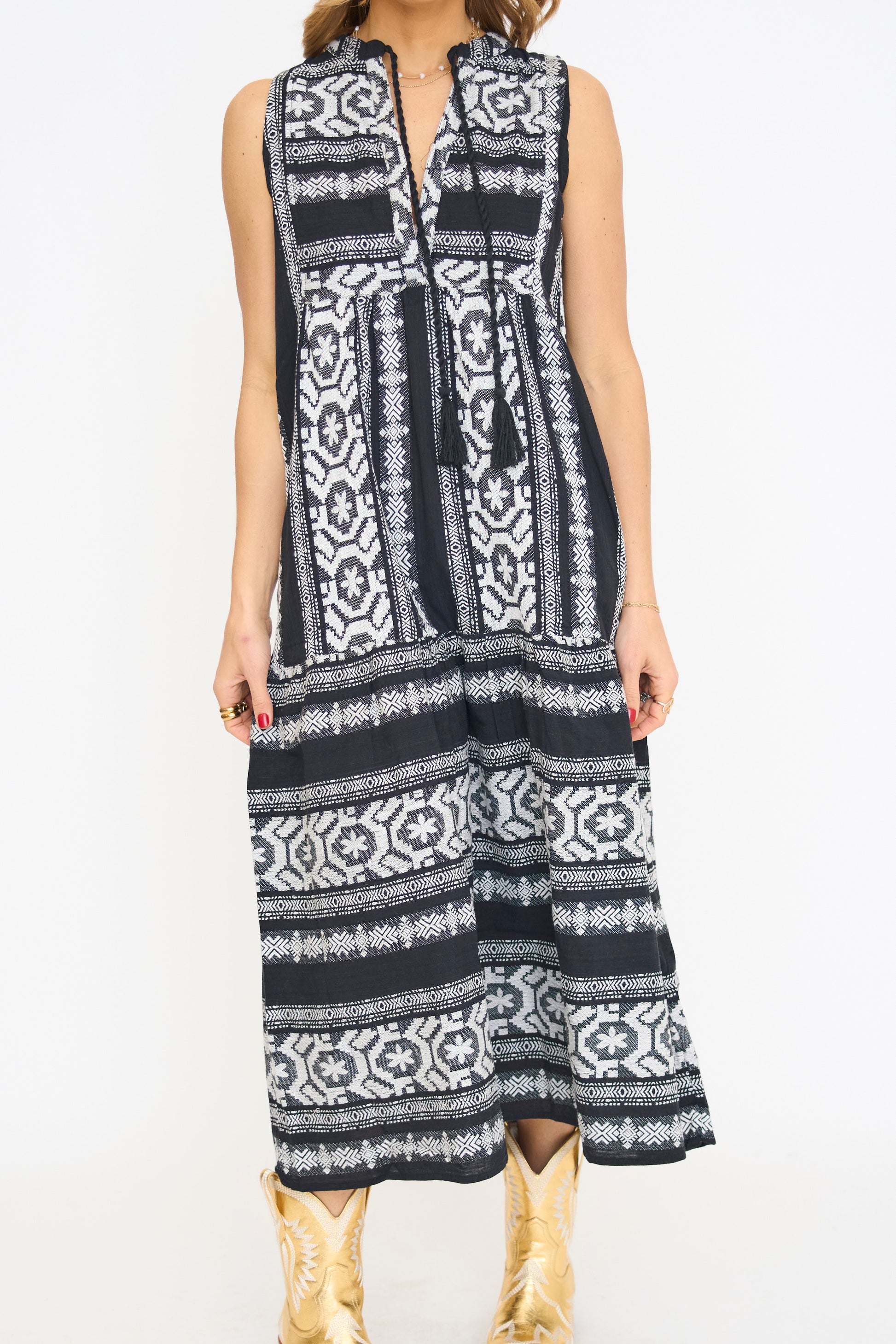 Transform your poolside stroll into an elegant sashay with this cotton jacquard dress. Featuring intricate embroidery, this dress goes beyond its traditional cover-up role. Finished with pintucks and tassels, it is an essential piece for any sunny day.