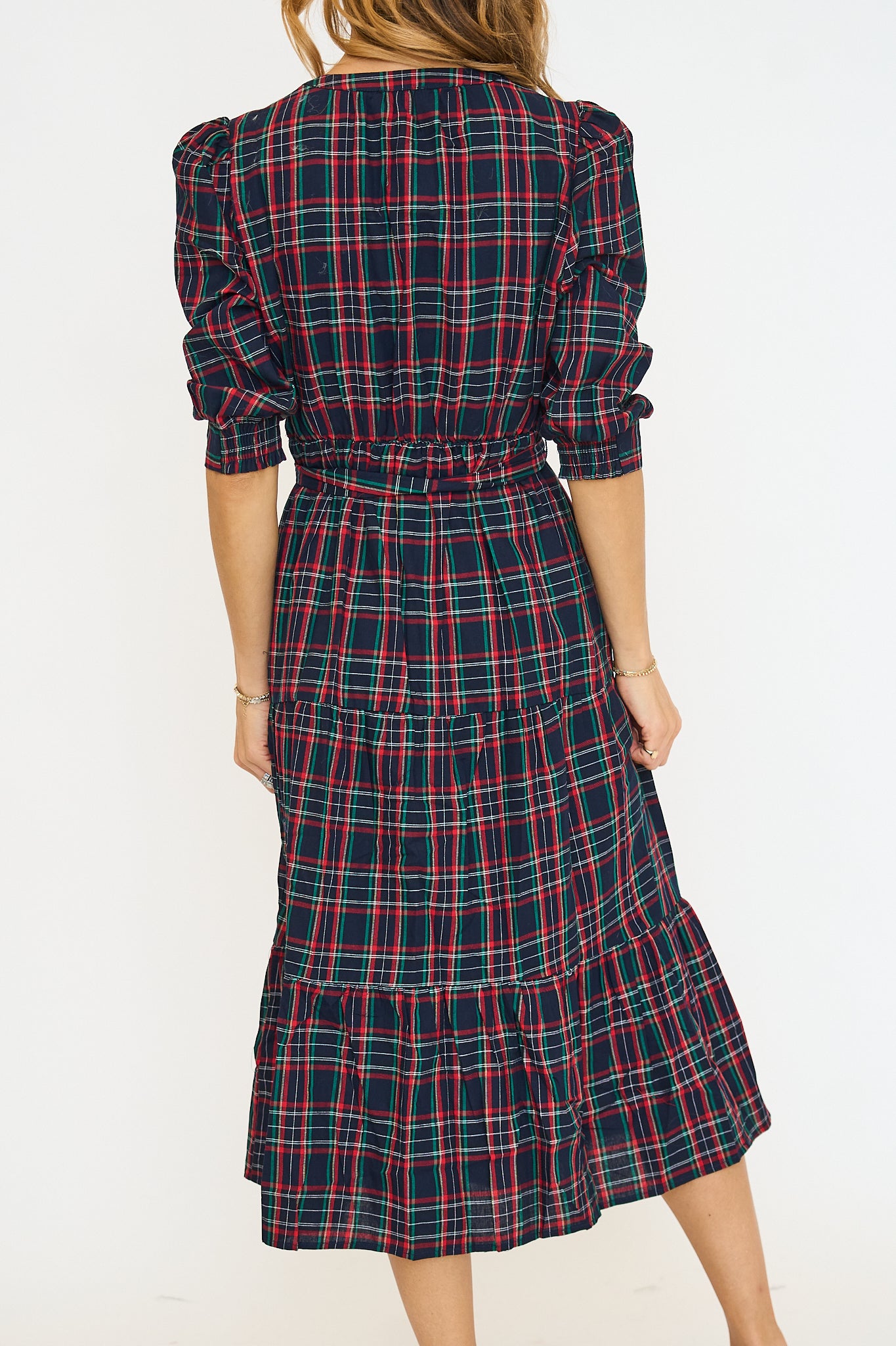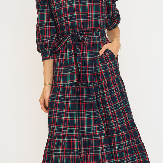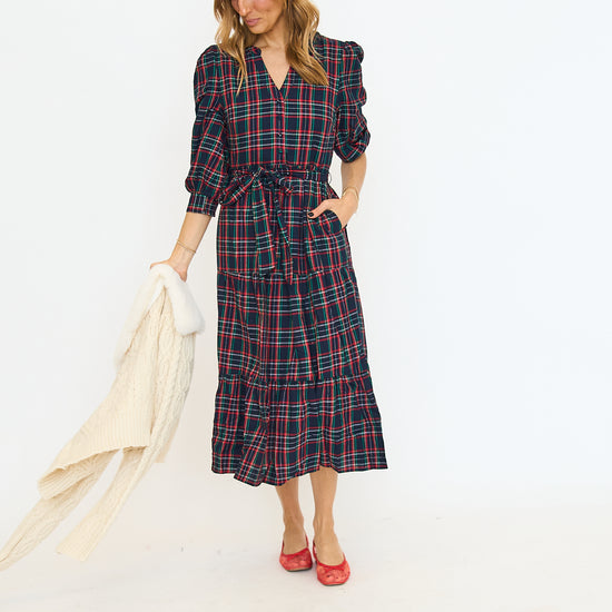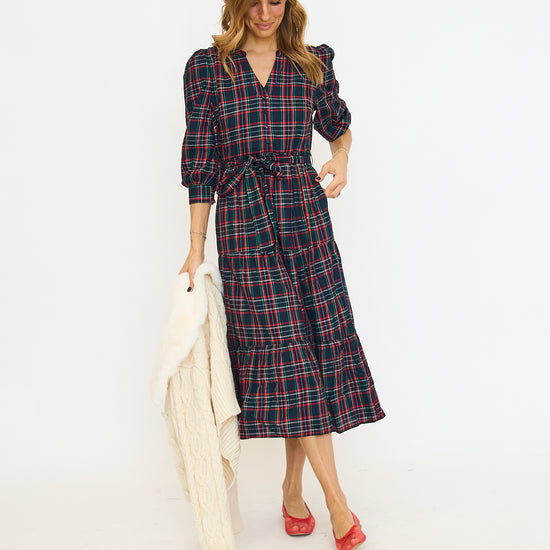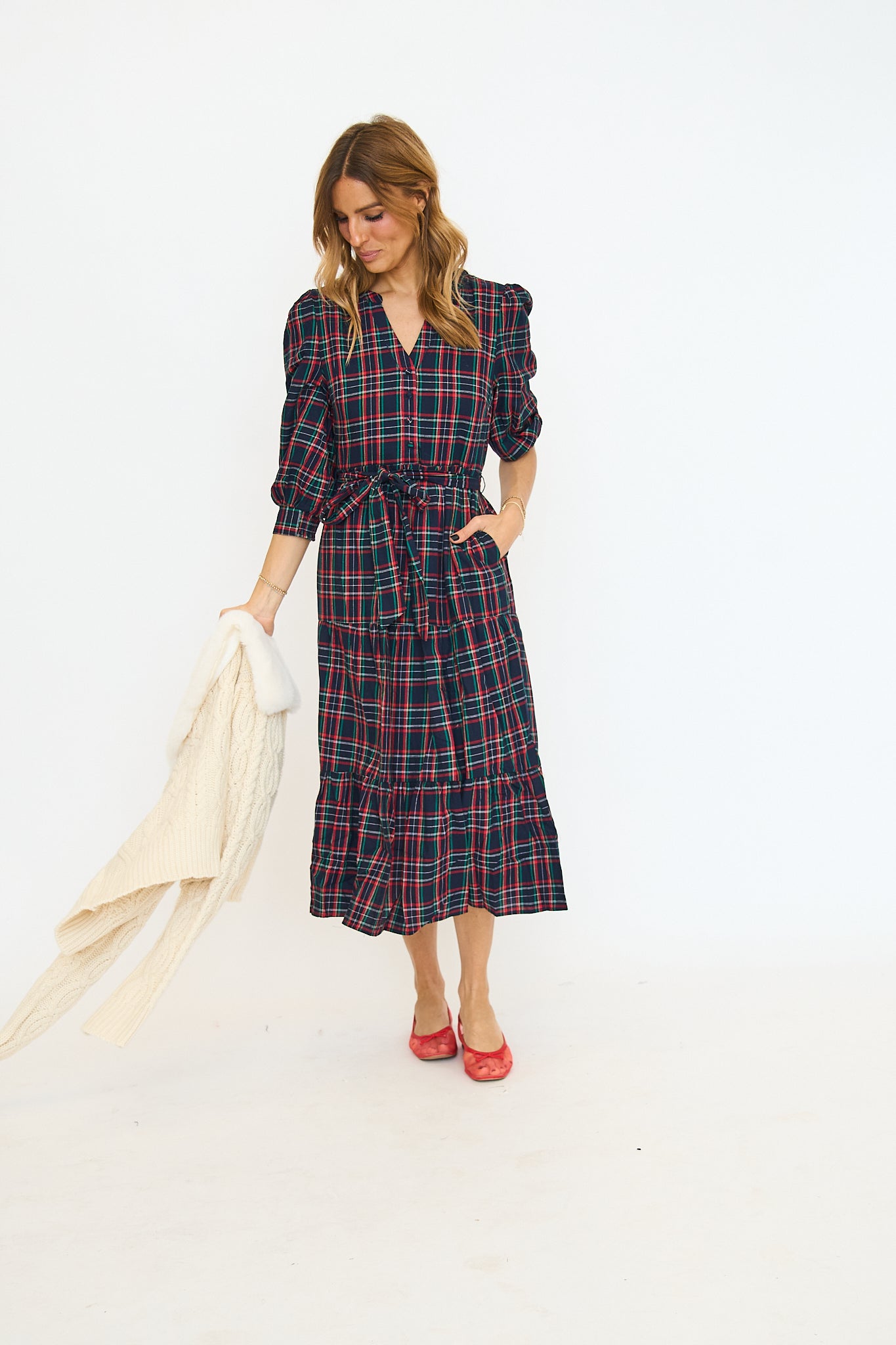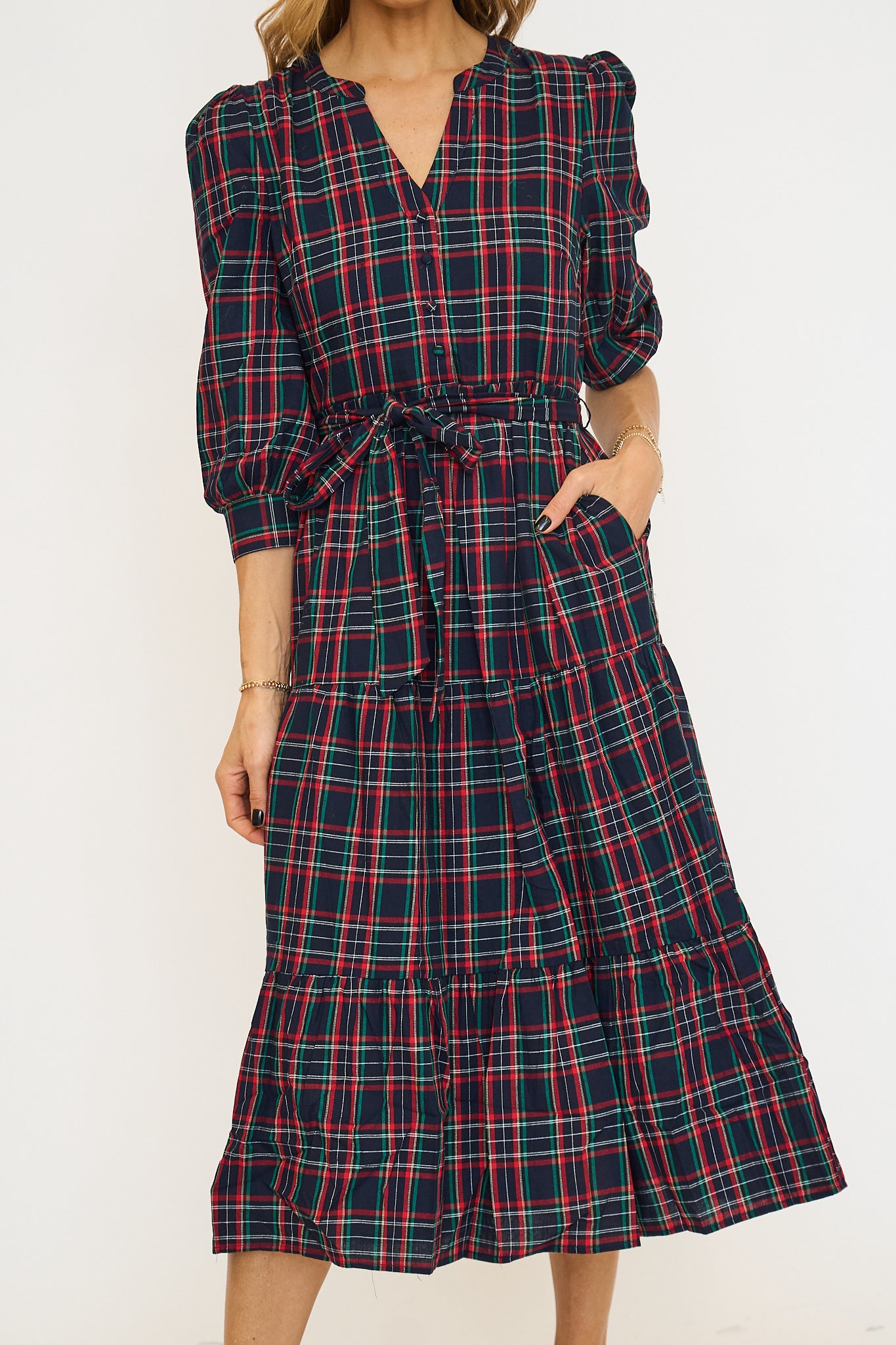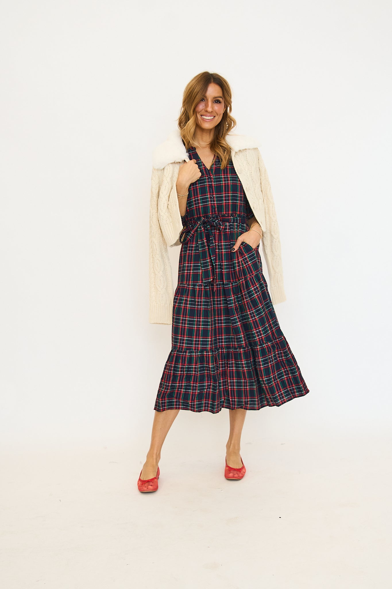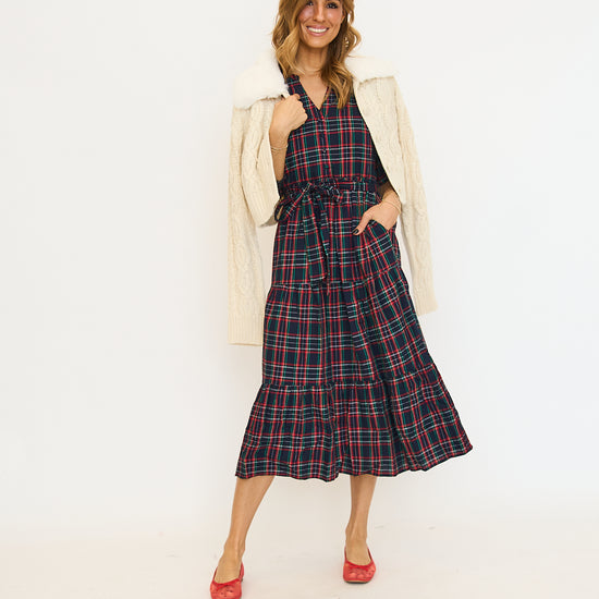 Step into fall with the Chapman Plaid Yanis Button Up Midi Dress, the perfect mix of cozy comfort and timeless style. Lightweight fabric, with a plaid pattern throughout, shapes long sleeves with a button up split neckline and a belt around the waist. Pair it with ankle boots and a leather satchel for an effortlessly polished autumn look.