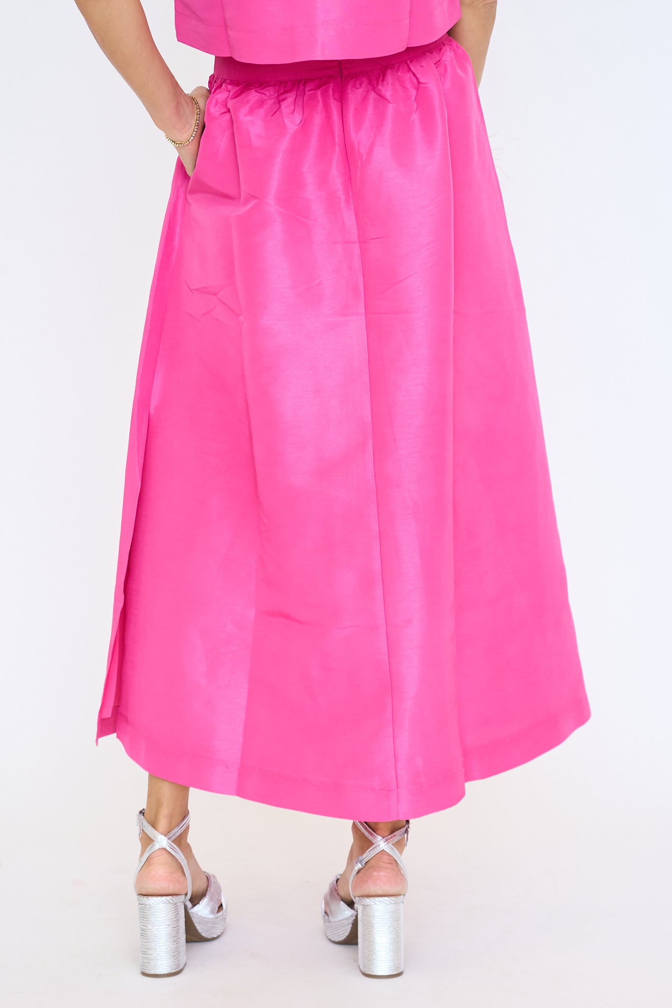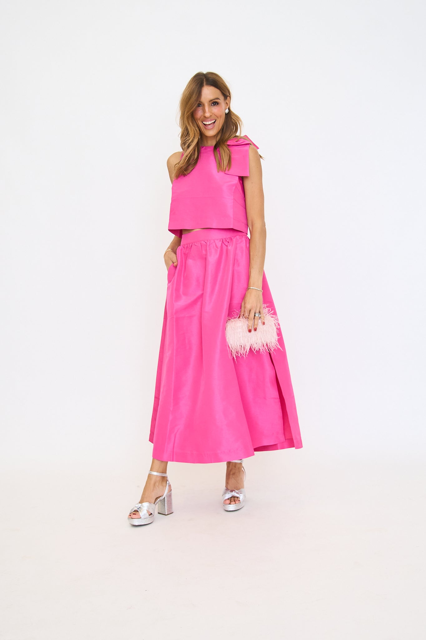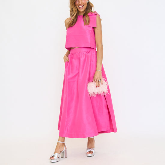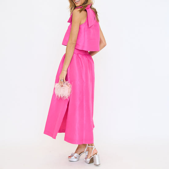 Sweet meets sophisticated in this chic and sophisticated maxi skirt. Finish the look with dainty heels and a mini bag. Make an elegant statement without even trying. Featuring a flirty side slit, handy pockets, and an invisible back zipper for a sleek finish. Pair with the matching top for a complete look! Style it with heels and gold accessories for a polished, head-turning outfit.