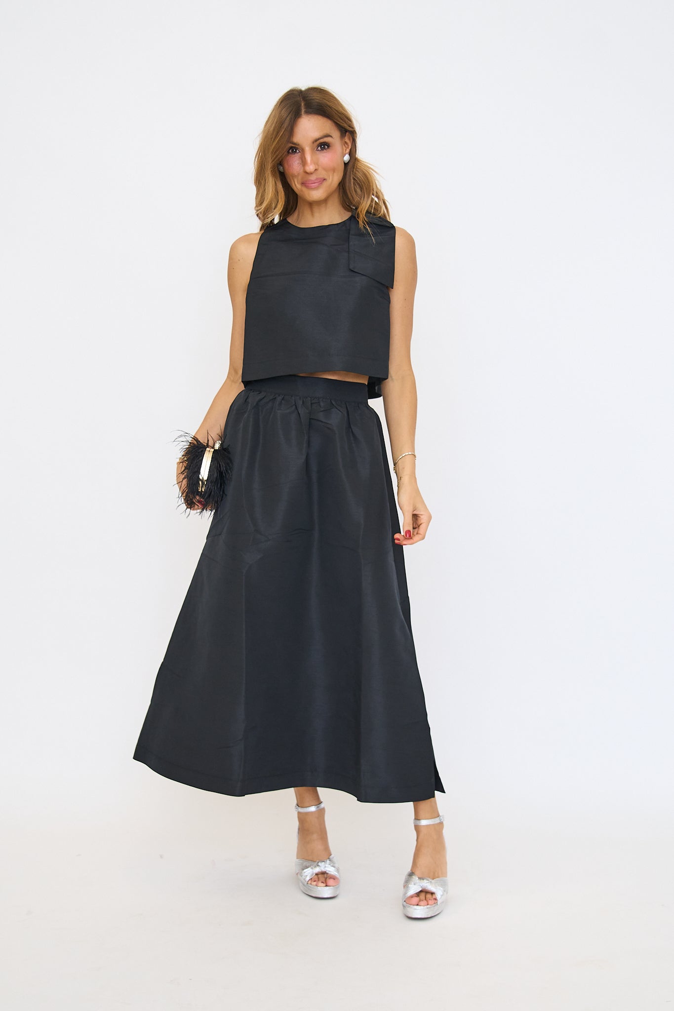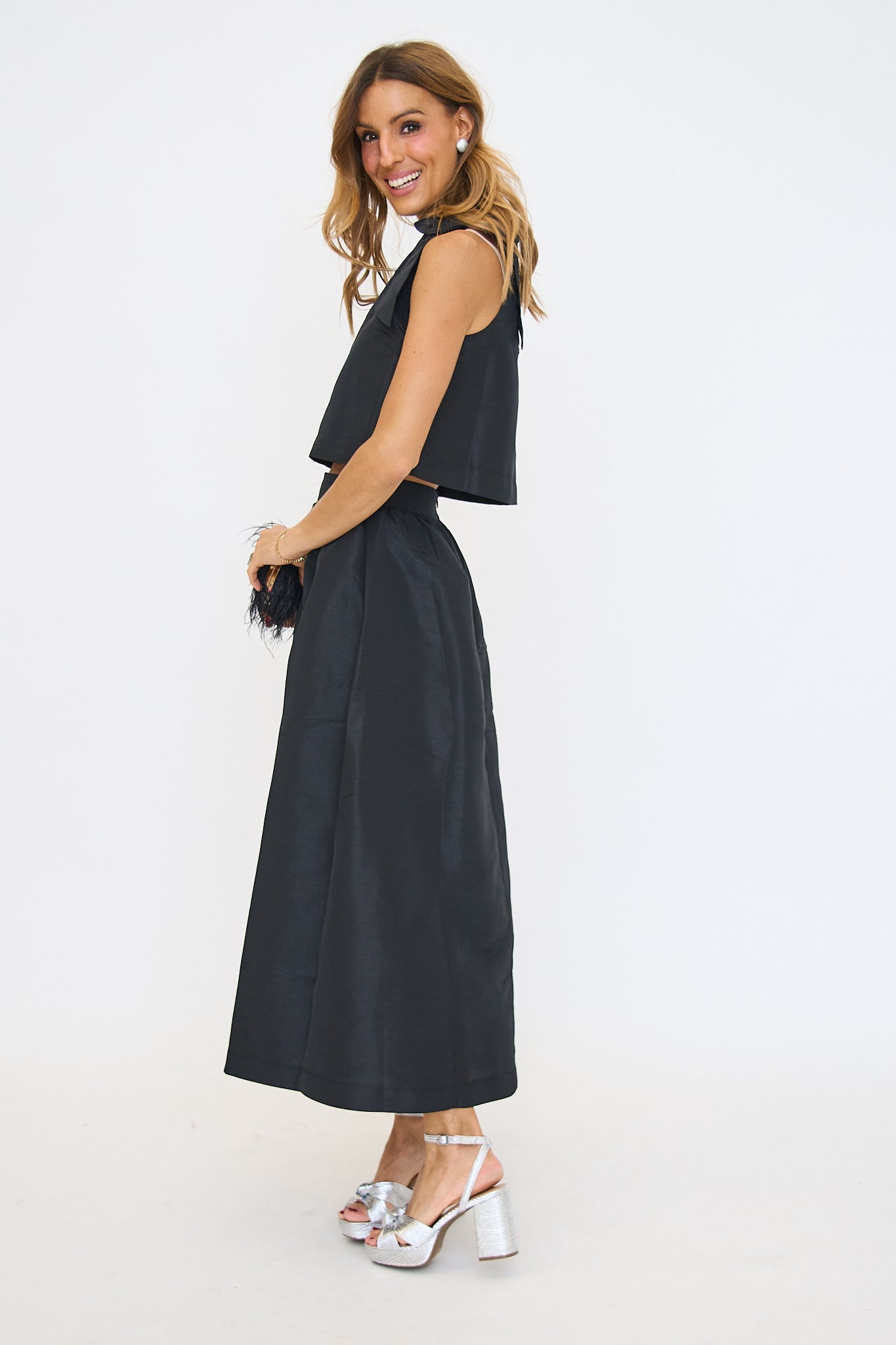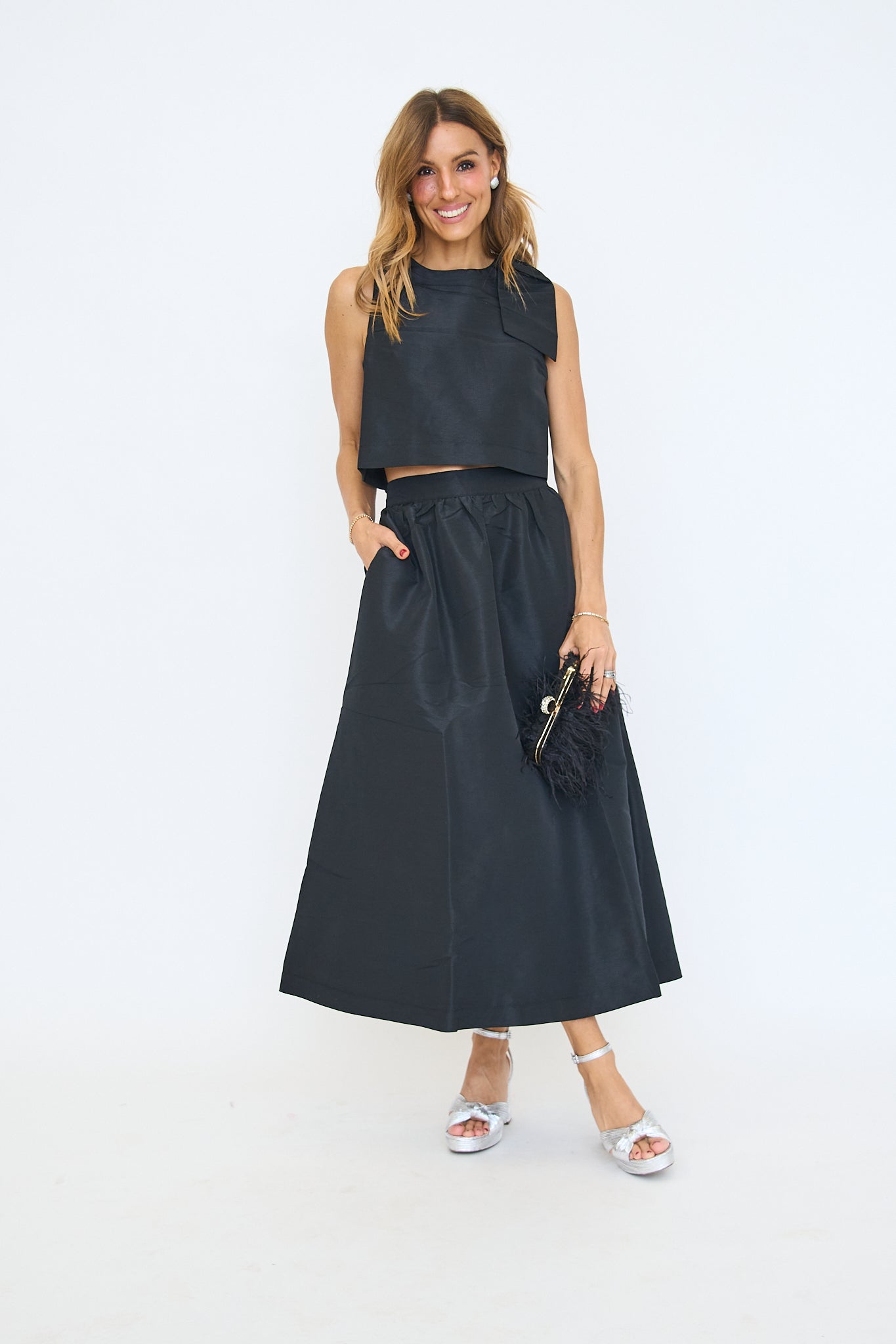 Sweet meets sophisticated in this chic and sophisticated maxi skirt. Finish the look with dainty heels and a mini bag. Make an elegant statement without even trying. Featuring a flirty side slit, handy pockets, and an invisible back zipper for a sleek finish. Pair with the matching top for a complete look! Style it with heels and gold accessories for a polished, head-turning outfit.