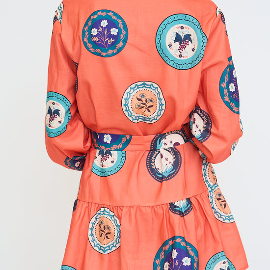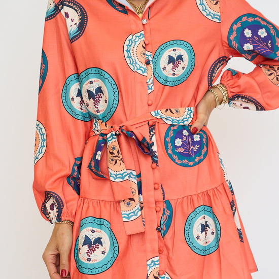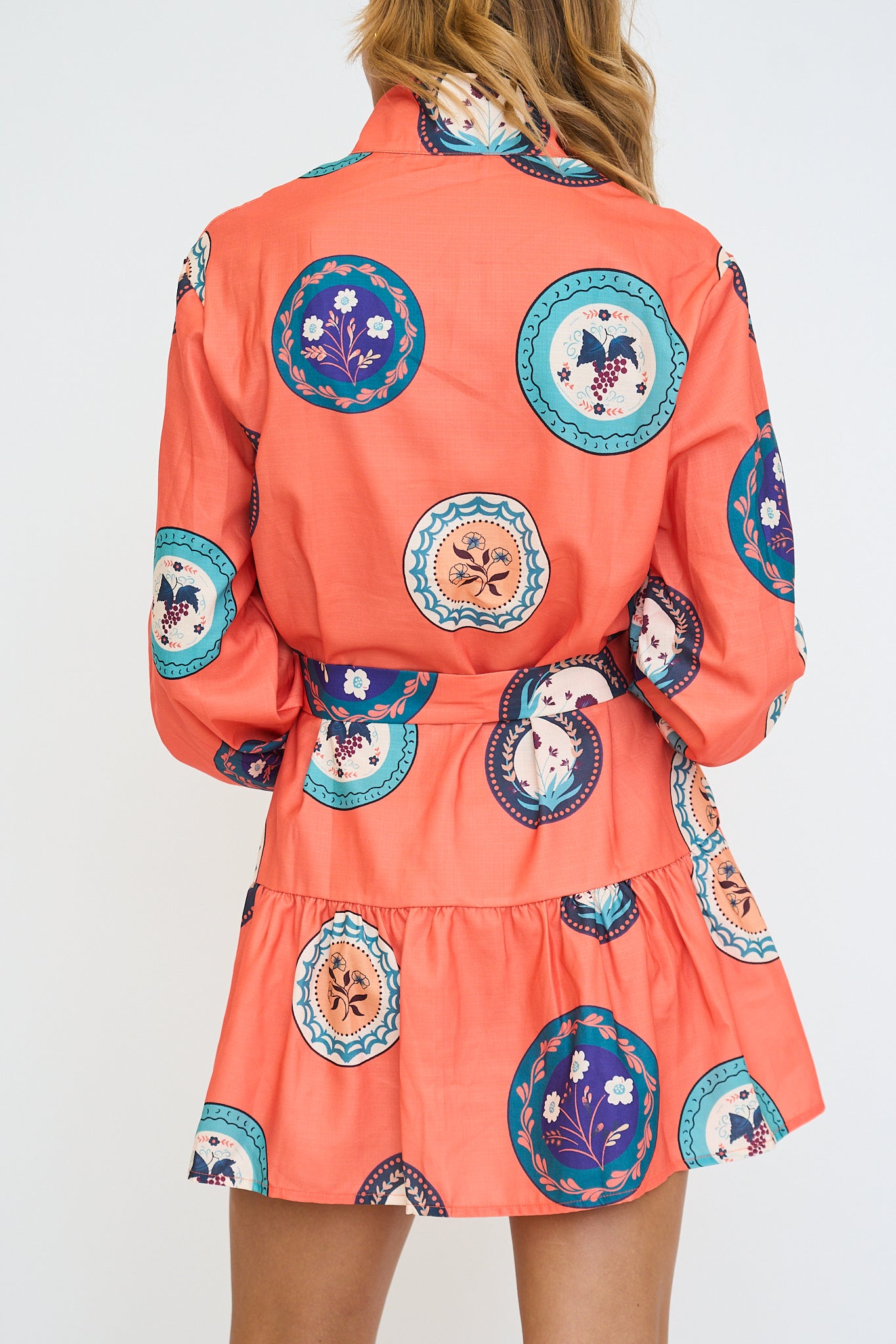 Gorgeous printed long sleeve mini shirt dress with matching waist tie.