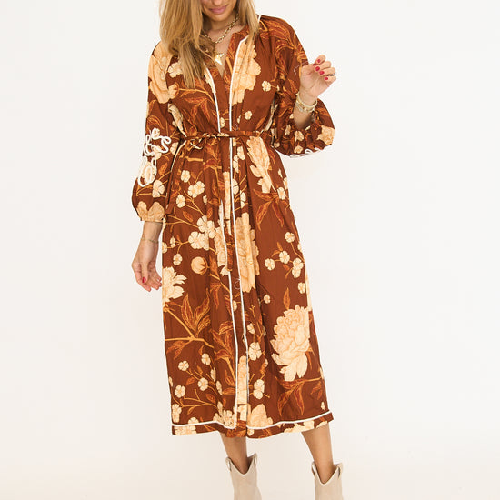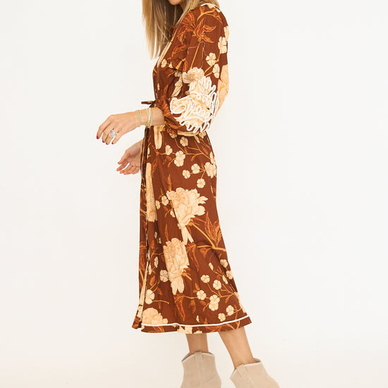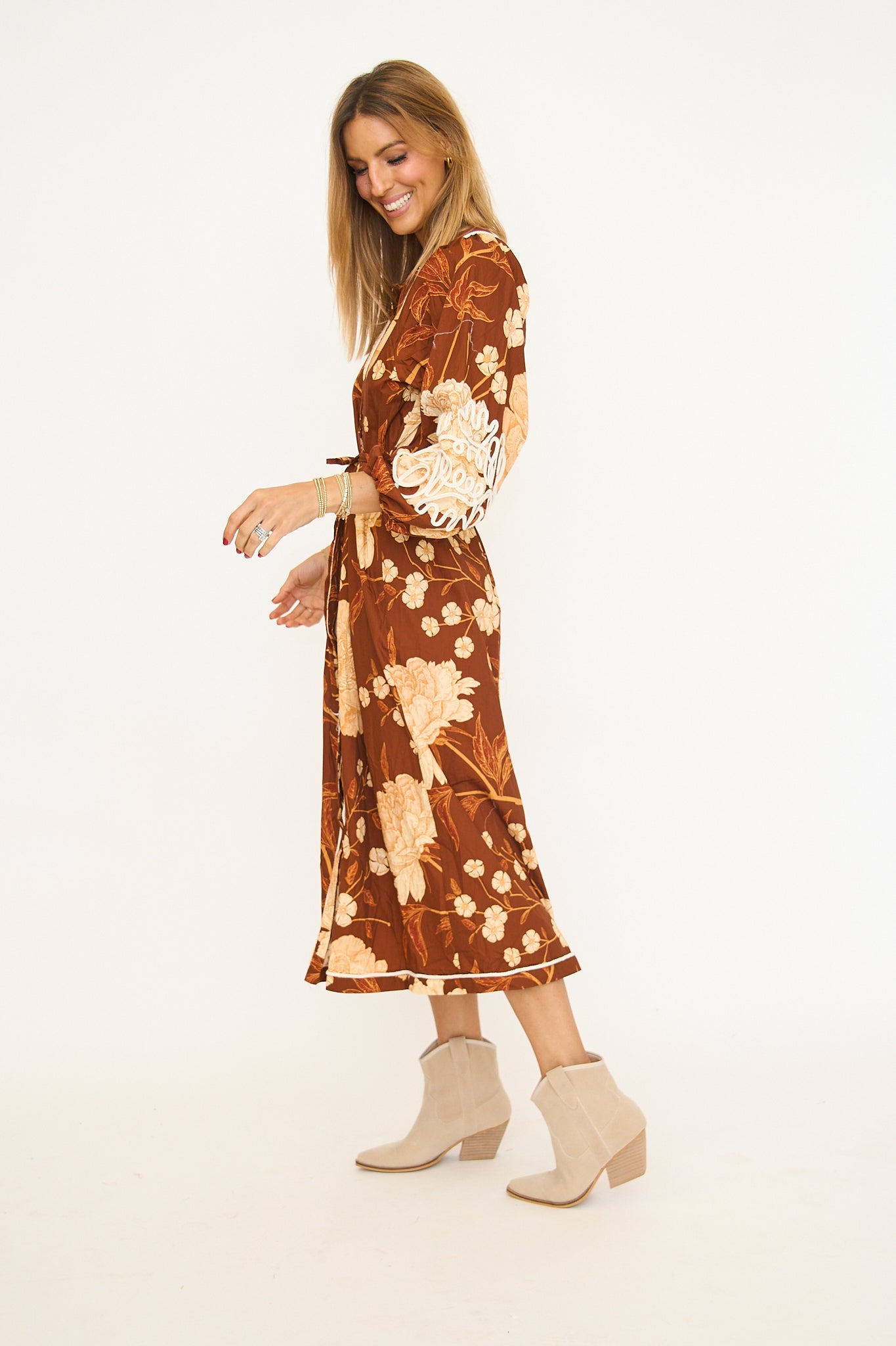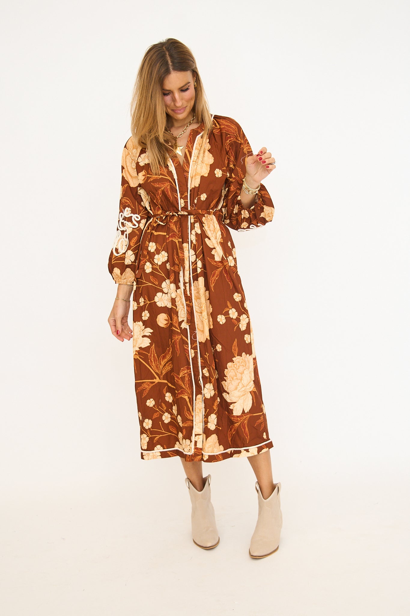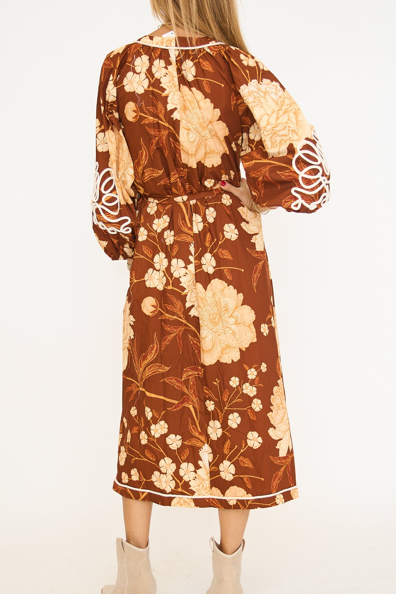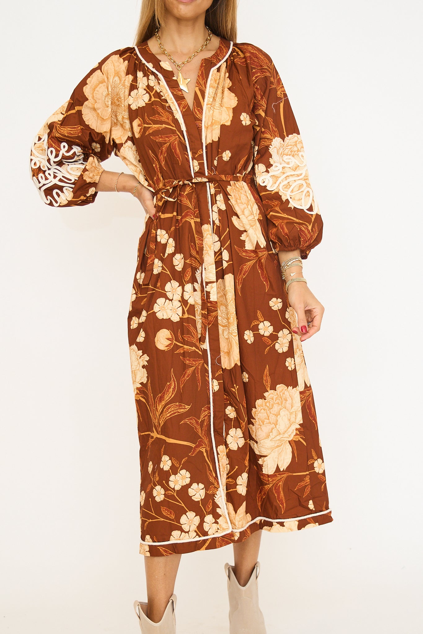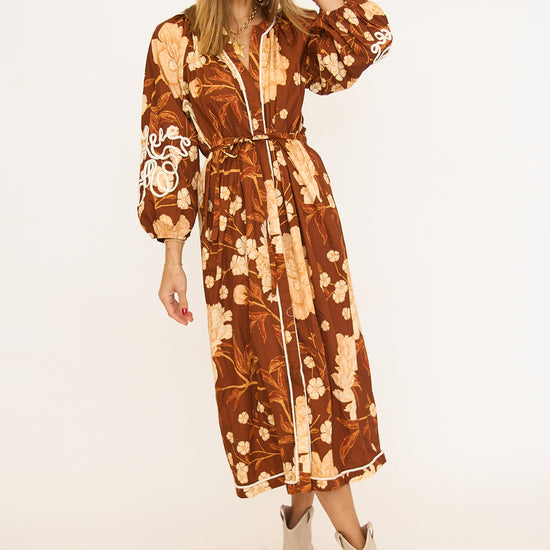 A romantic, refined silhouette that blends feminine flair with detailed craftsmanship. A dedicate all-over floral print is complemented by contrast embroidery accents for a subtle but impactful textured effect.