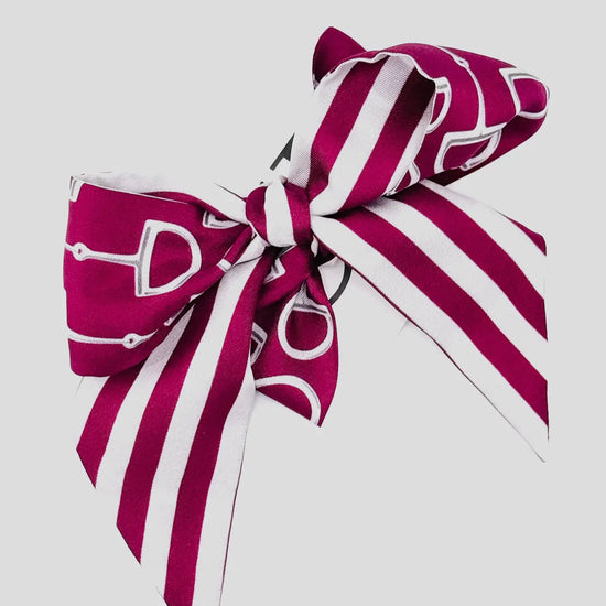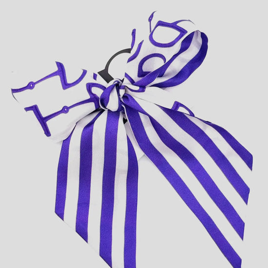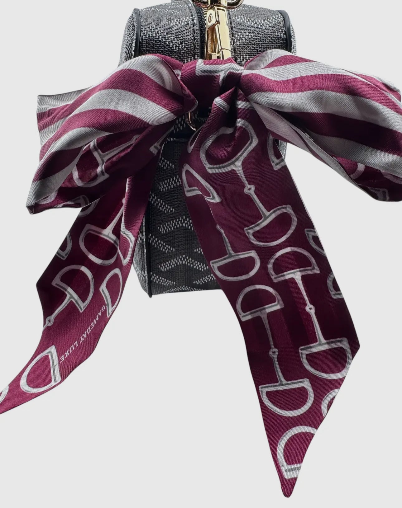 Add a little something extra to your Clear bag with one of our Twillys. Made of 100% silk, this custom fabric twilly is sure to elevate your gameday look. One side is printed with an iconic horsebit print while the opposite side has a complimentary classic stripe print. Tie it around the handle of your bag, wear it in your hair, or tie it onto your boots! 32 Inches x 2 Inches