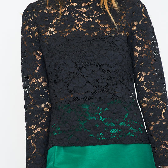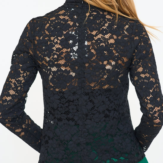Get ready to turn heads with Thea, our stunning black lace top with a mock neck design. Perfect for a night out or a special occasion, this elegant top will elevate any outfit.