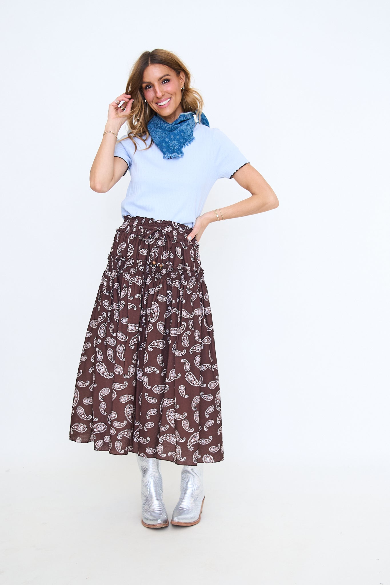 Fit is true to size with a fitted silhouette. Size up if in between! Rachel is 5'8 and wearing a size small.
