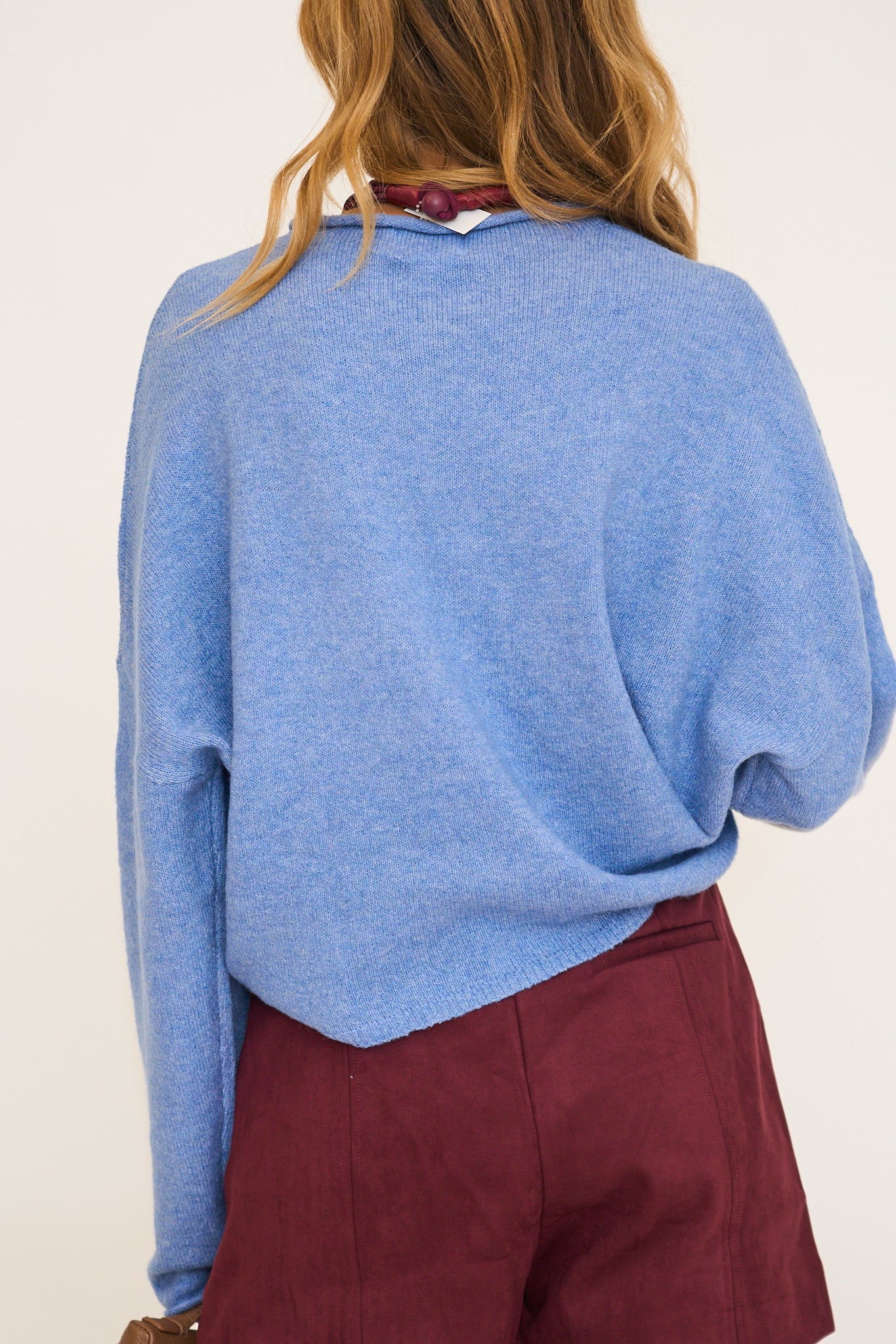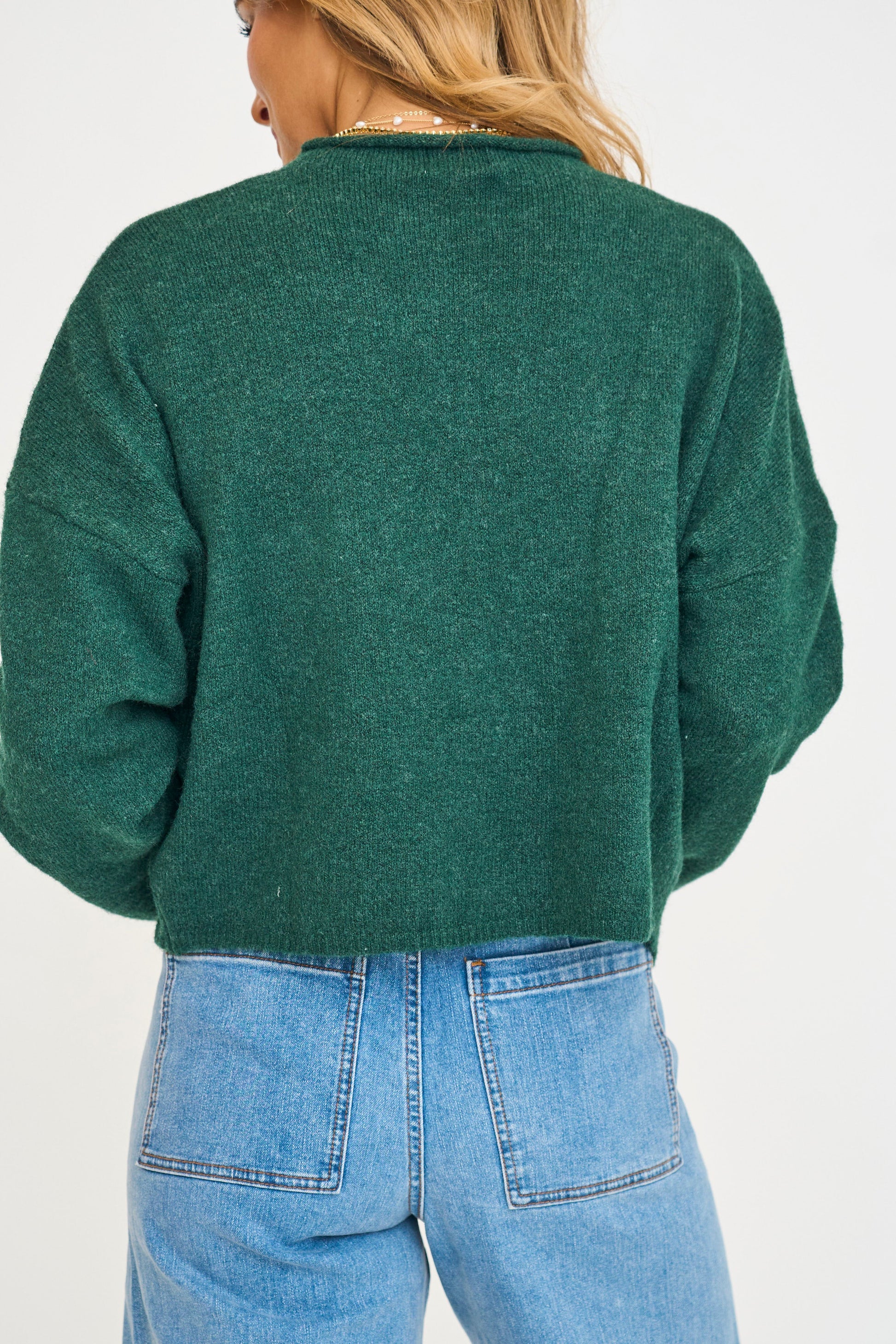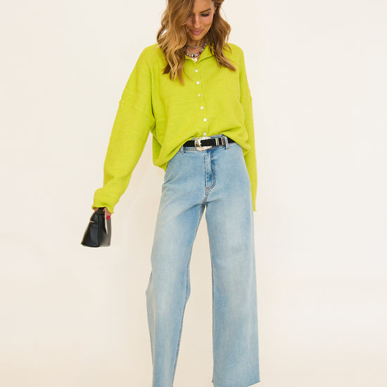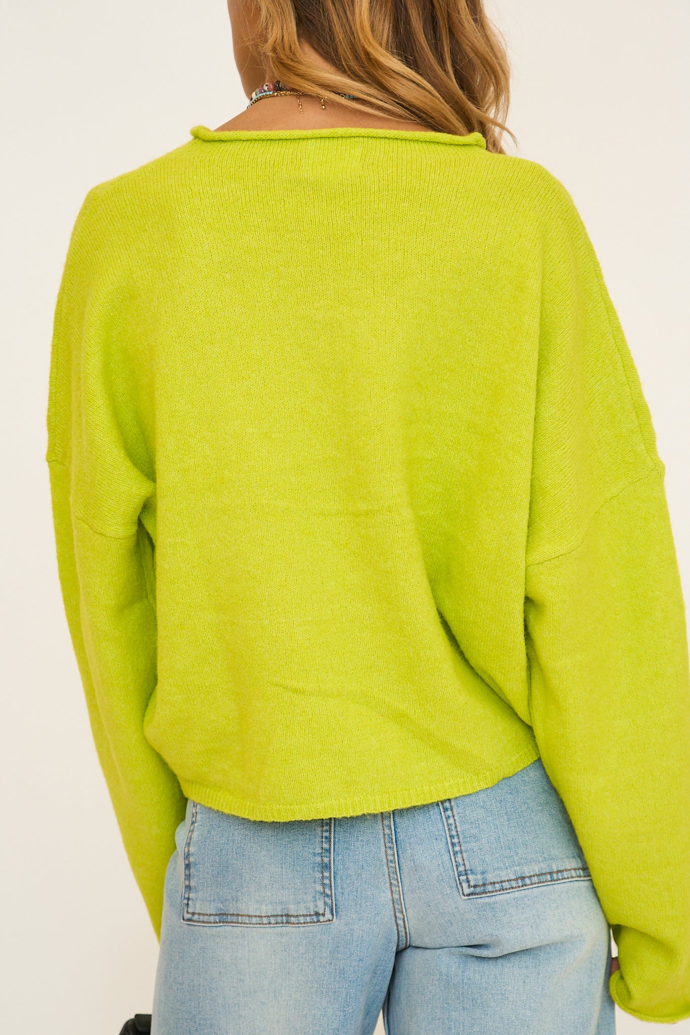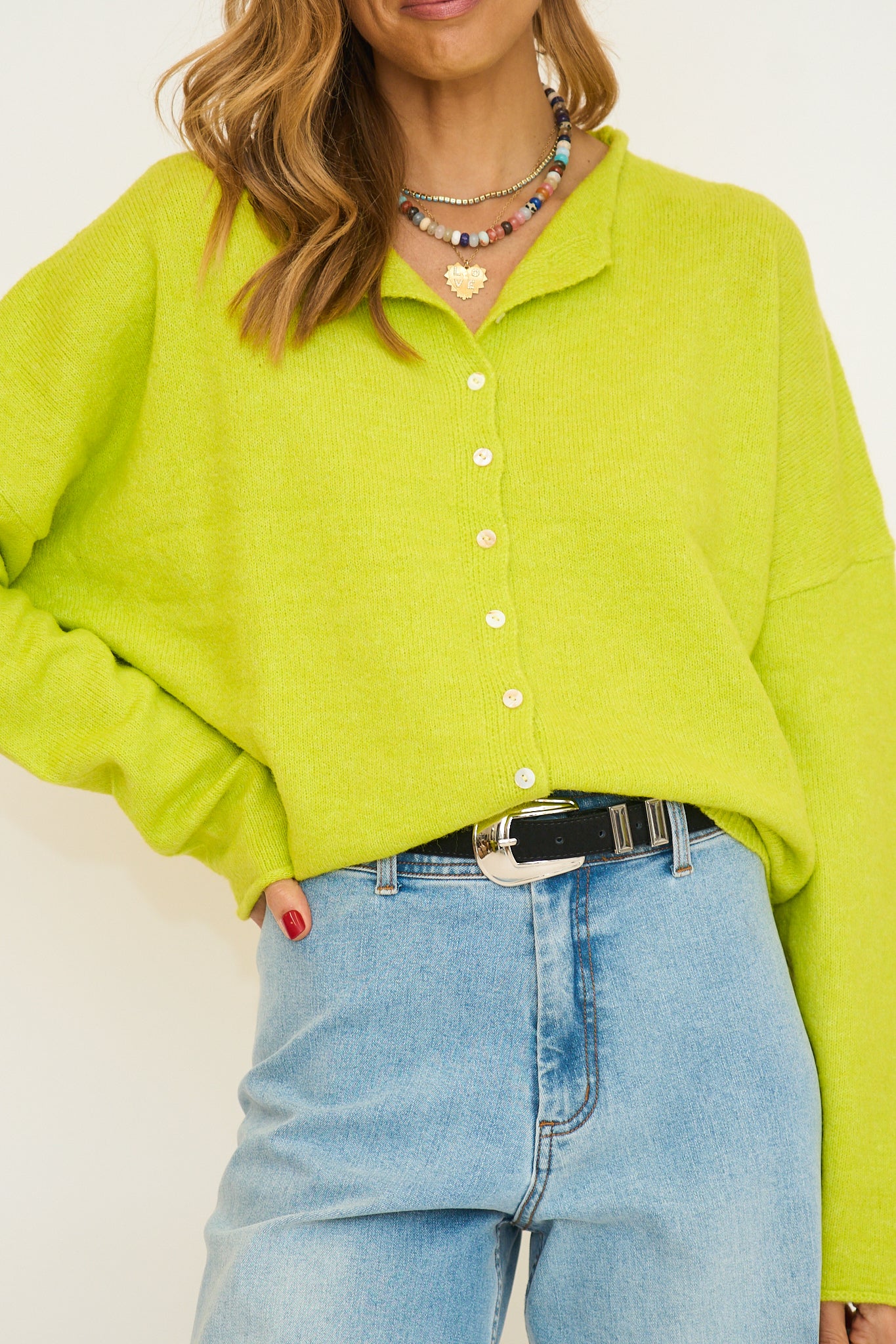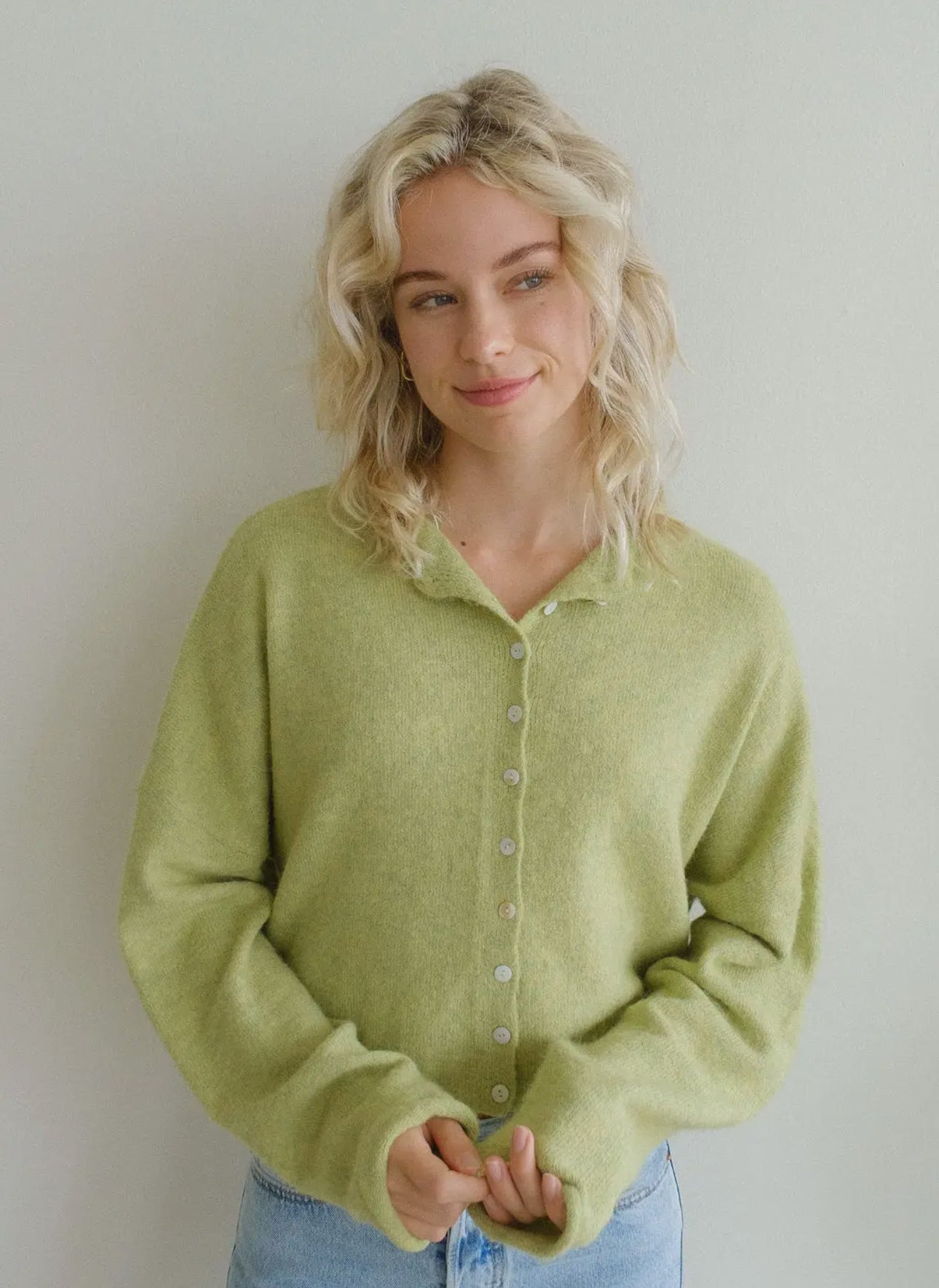 Soft and cozy lightweight cardigan with rolled edge finish on the sleeves and collar.