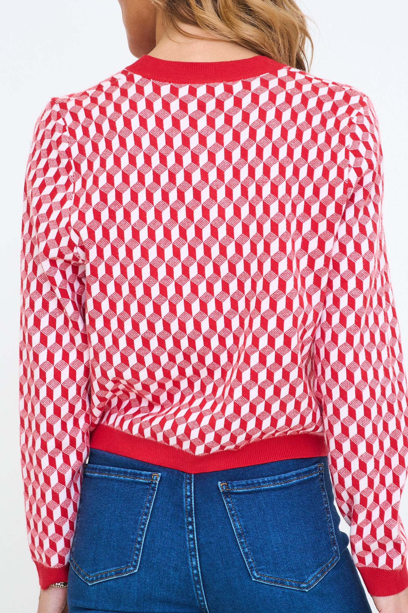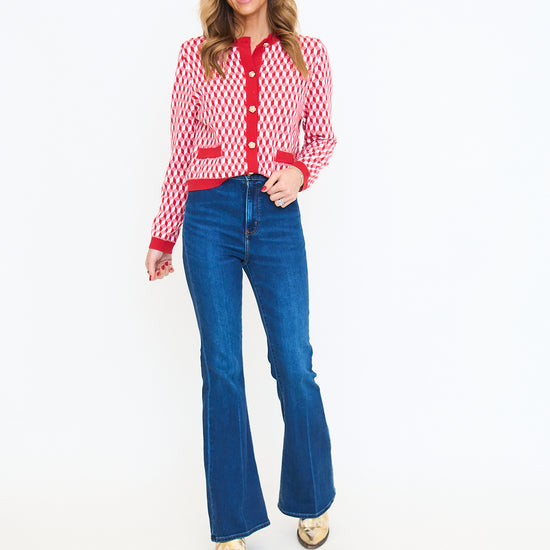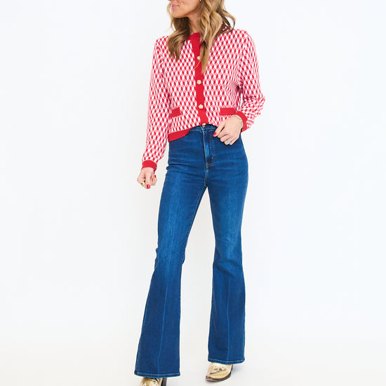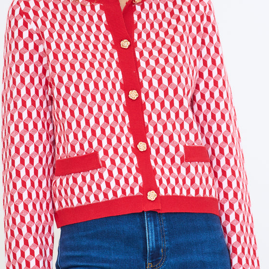 Red Geometric Print Cardigan