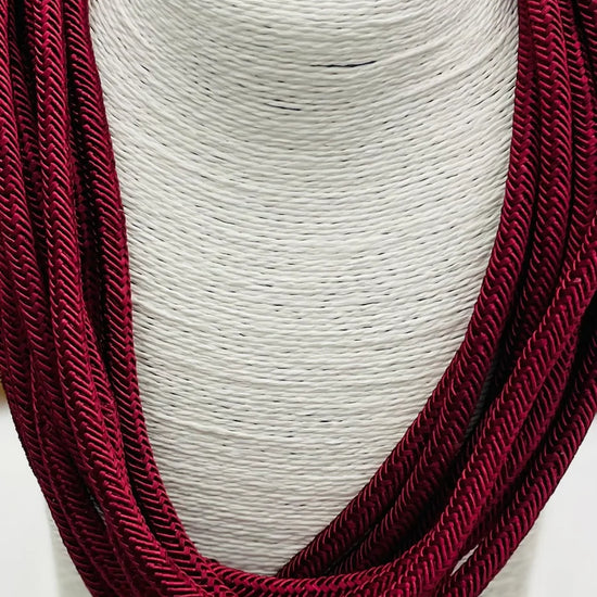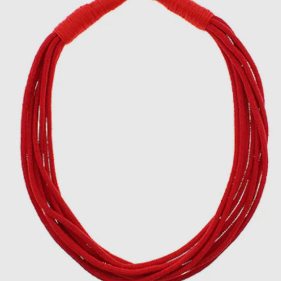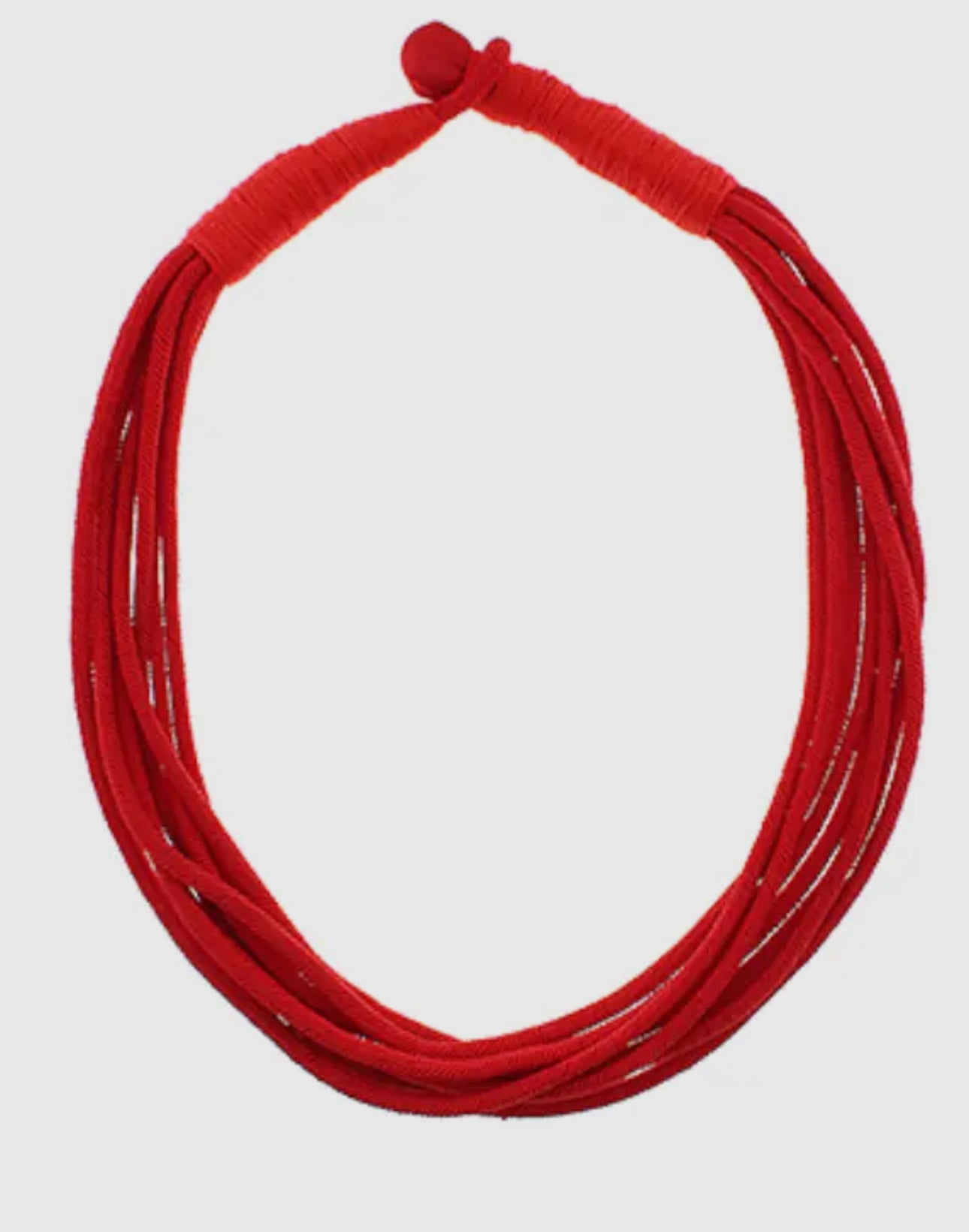 The only necklace for any season. Necks will be cool and comfortable in this showstopper. 24-inches long with 8-strands of cotton roping. Easy ball-n-eye closure.