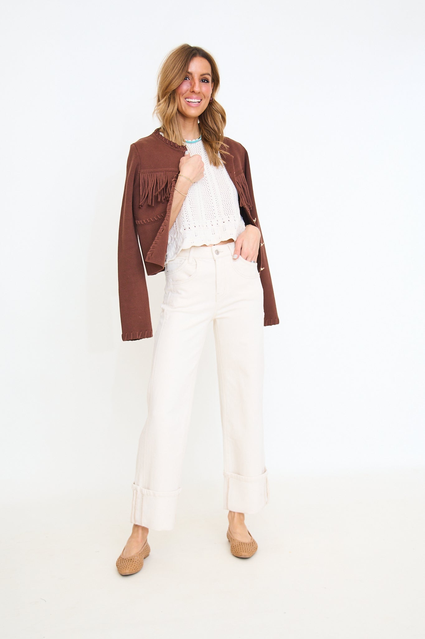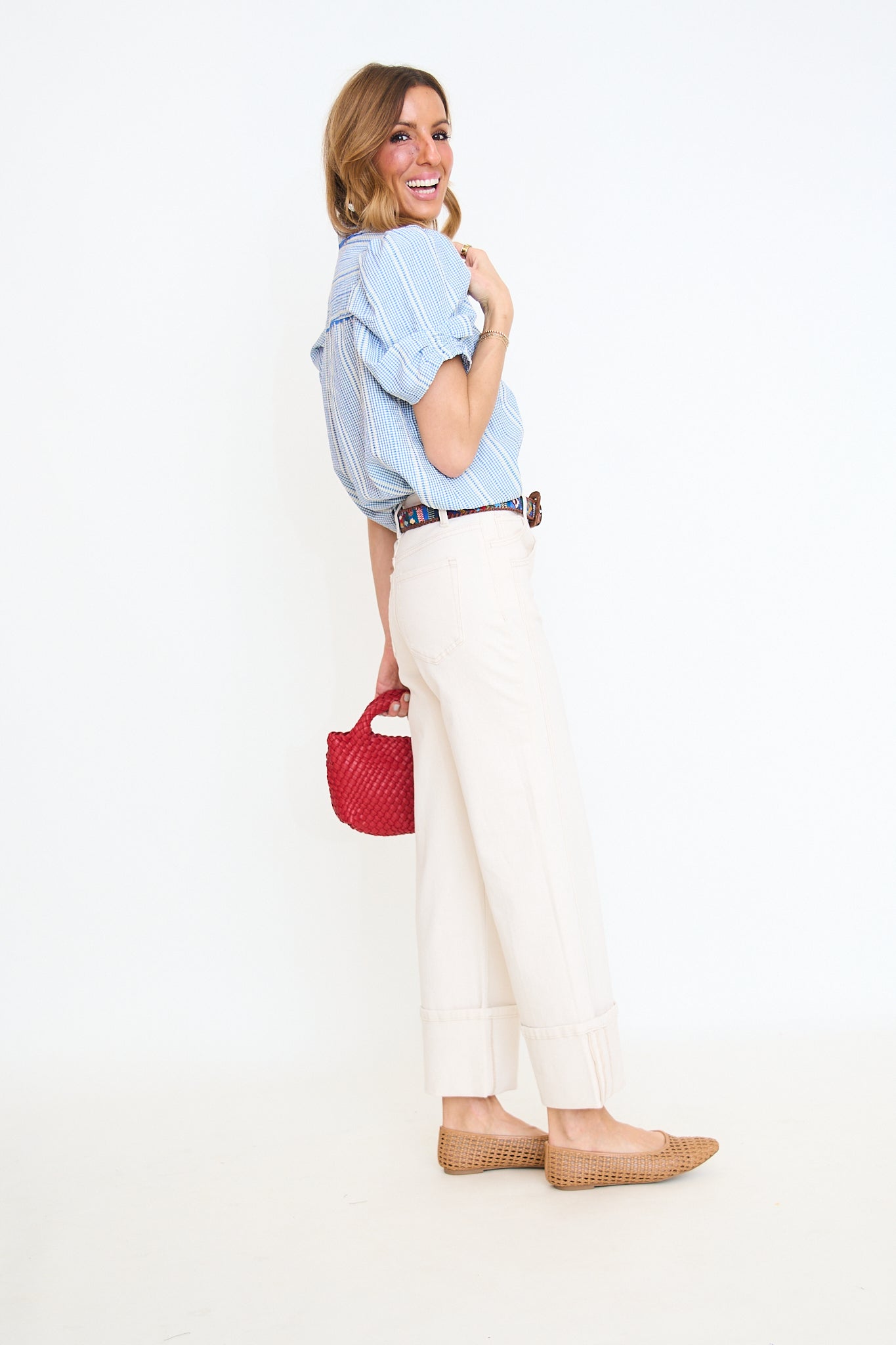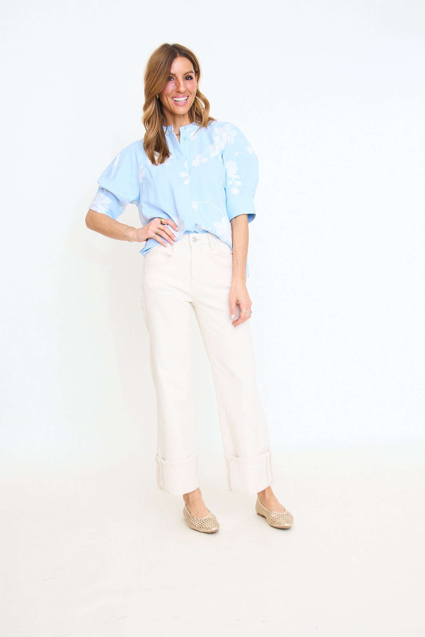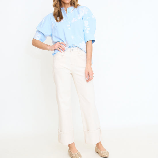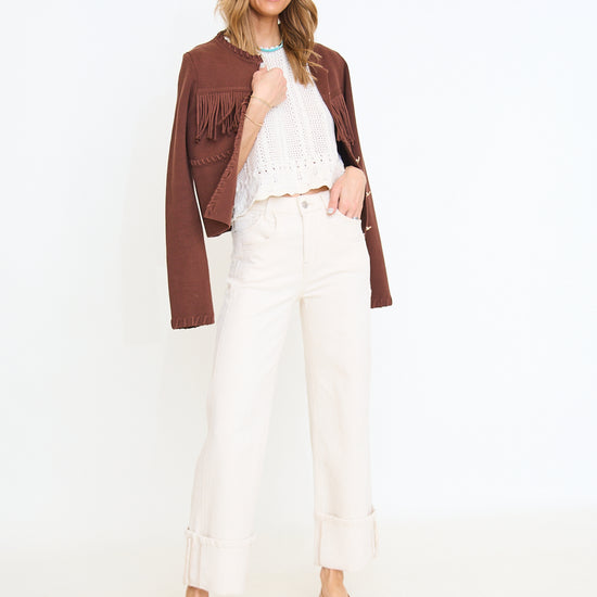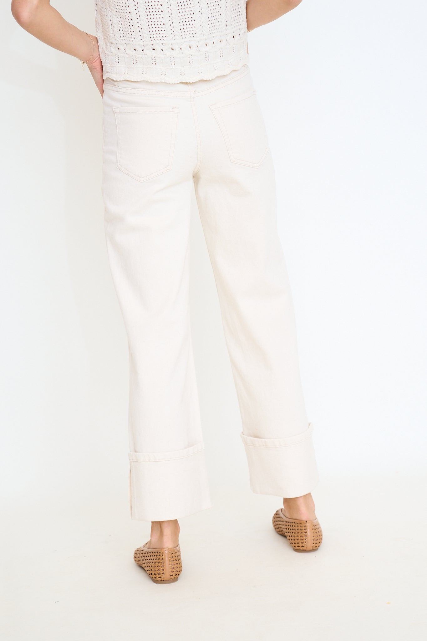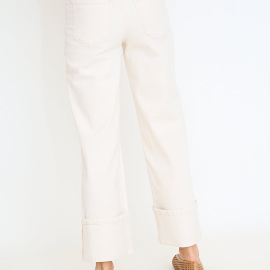 Ecru Super High Rise Cuffed Wide Leg Jean