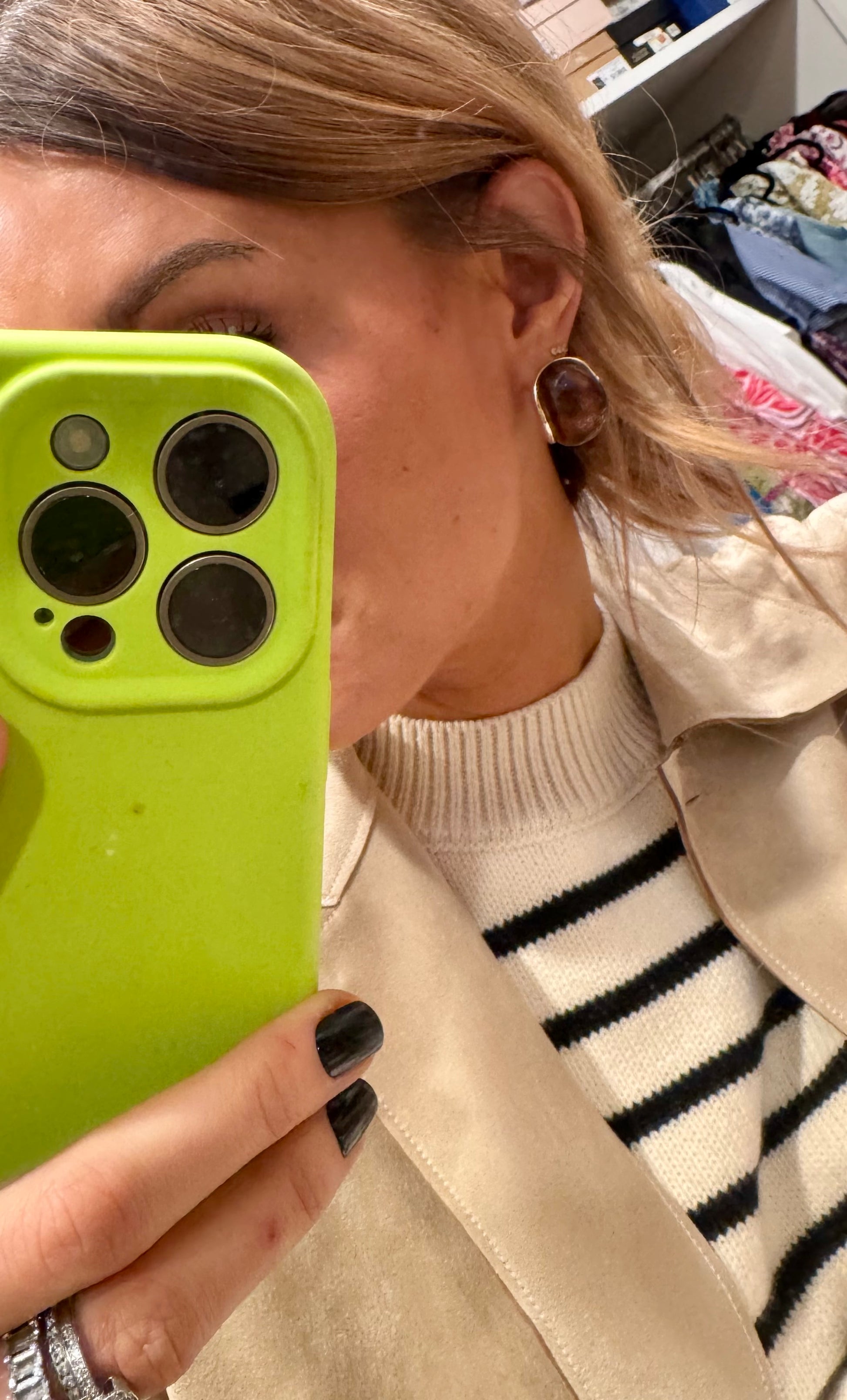 This pair of drop earrings is made with 30% Zinc 70% Acrylic.