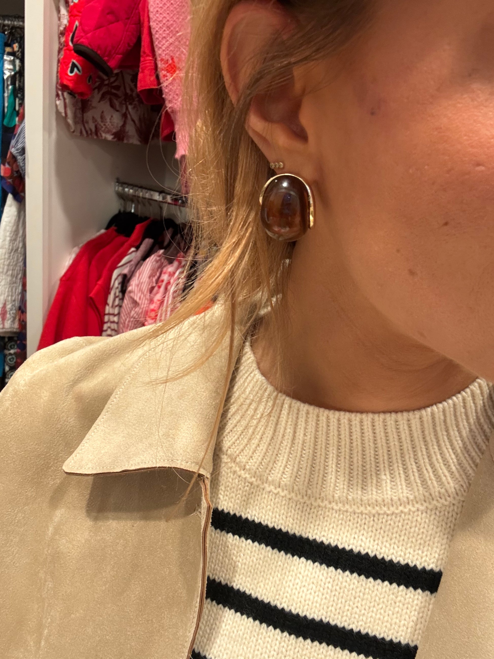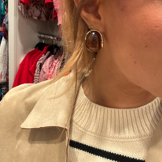 Perfectly polished and endlessly versatile, this pair of drop earrings comes with a special wide marble resin curved design.