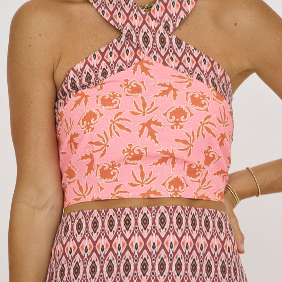 Get wild in our Wild Print Halter Crop Top! With a criss cross neck halter and funky wild print, this top will make you stand out. Pair it with our matching Wild Print Midi Skirt for a fierce and fun look. Can be dressed up or down for any occasion.